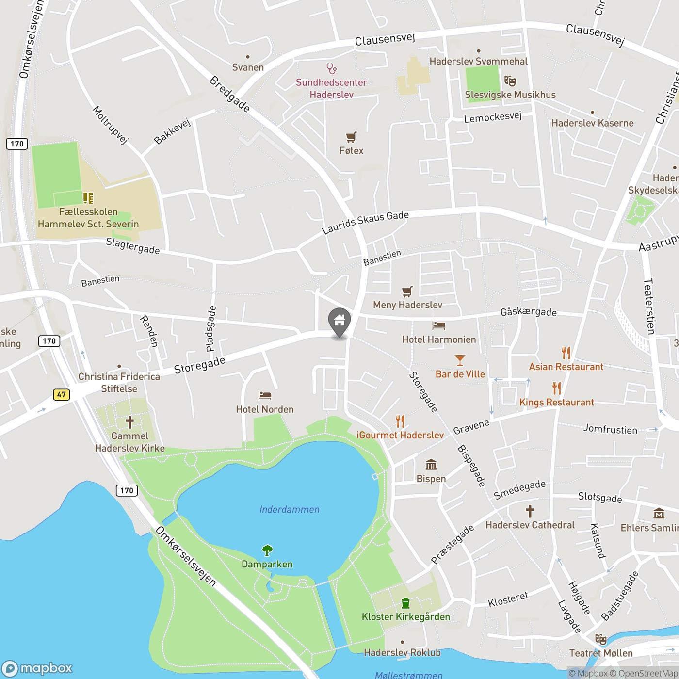 Lige ved gågaden og tæt på Haderslev Dampark ligger dette kontorlejemål med optimal beliggenhed ud til et af Haderslevs mest trafikerede veje. Lejemålet er beliggende i præsentabel og velholdt ejendom med delvist bindingsværk og rødmalet facade ud til Storegade.
