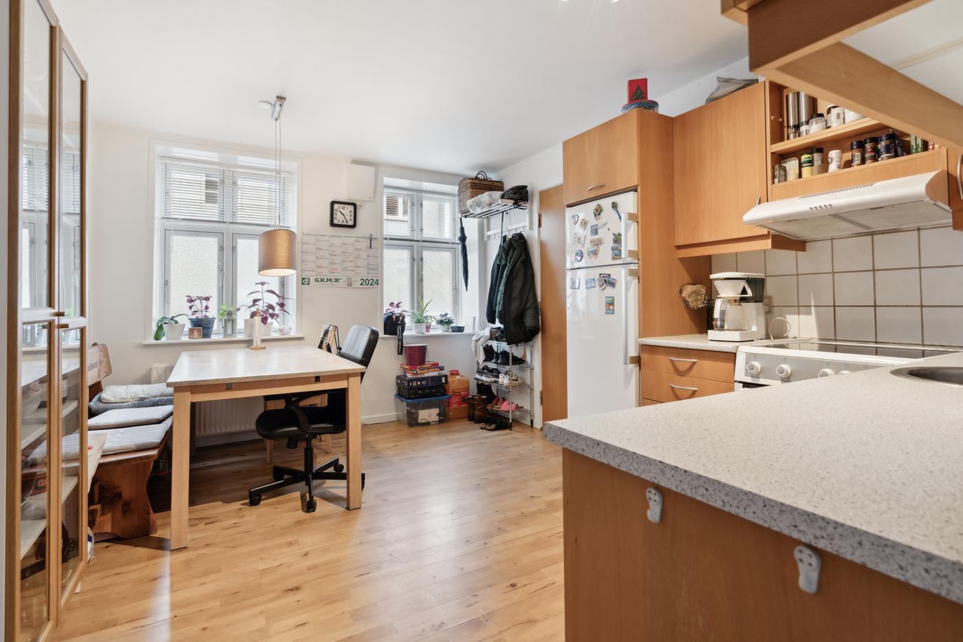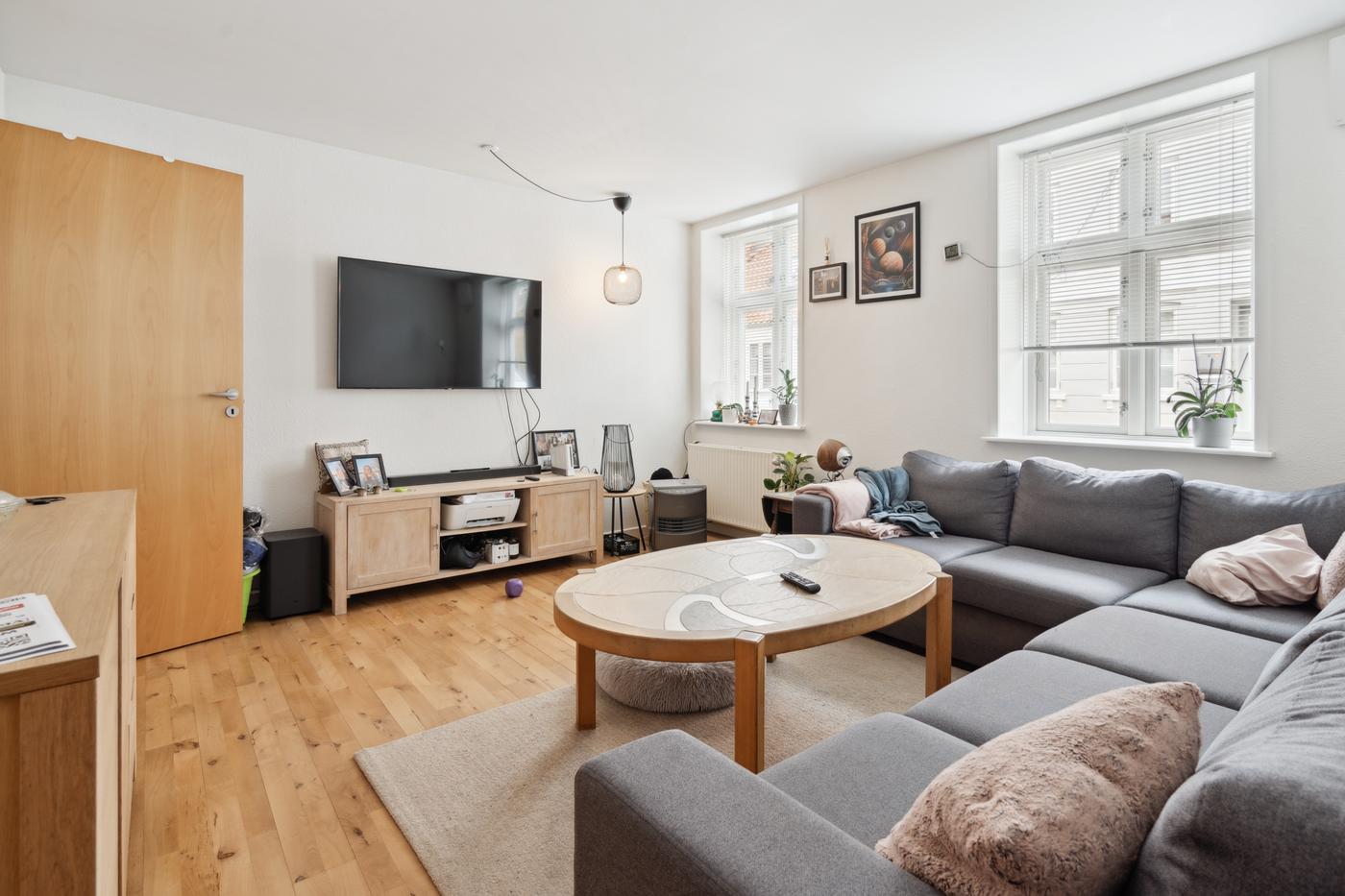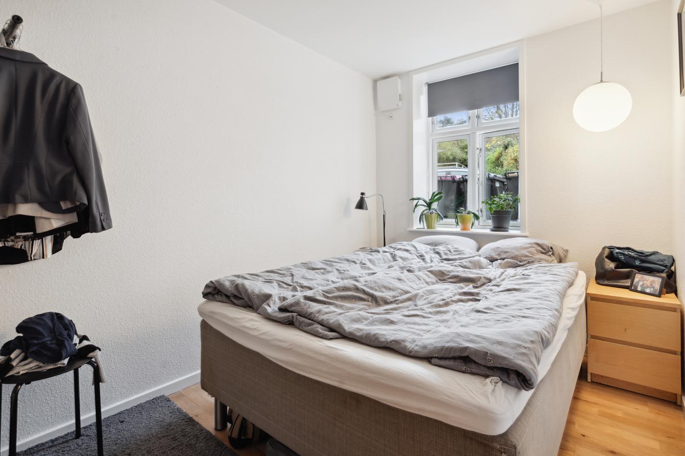 Ejendommen har en pudset facade og er forsynet med et klassisk rødt tegltag, der giver bygningen et elegant og tidløst udtryk. Bag ejendommen findes et privat parkeringsareal samt en fælles have, som lejerne frit kan benytte, hvilket er et ekstra plus for de nuværende og fremtidige beboere.