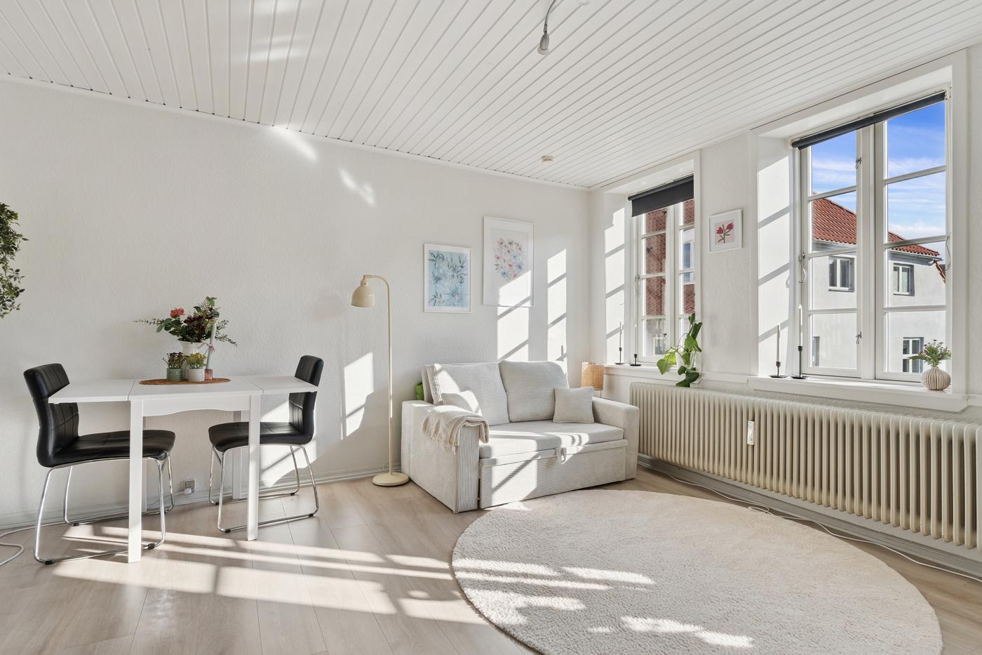 En rummelig og moderniseret lejlighed med nyere køkken, badeværelse, lofter, gulve og vægge. Lejemålet fremstår lyst og indbydende med en god planløsning.