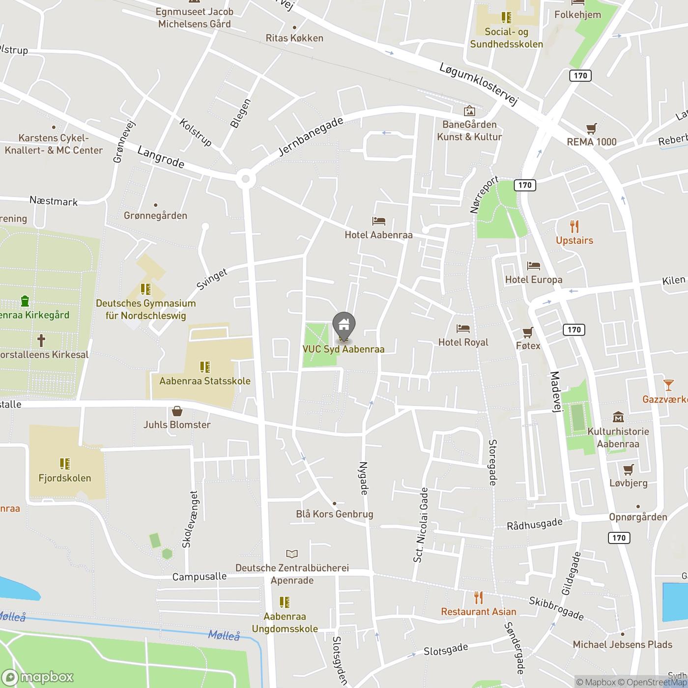 Ejendommen er beliggende i hjertet af Aabenraa, på en af byens bedste placeringer. Med kun 10 minutter gang til Aabenraa station og nem adgang med bil via Forstallé er det nemt for både studerende og medarbejdere at komme hertil.