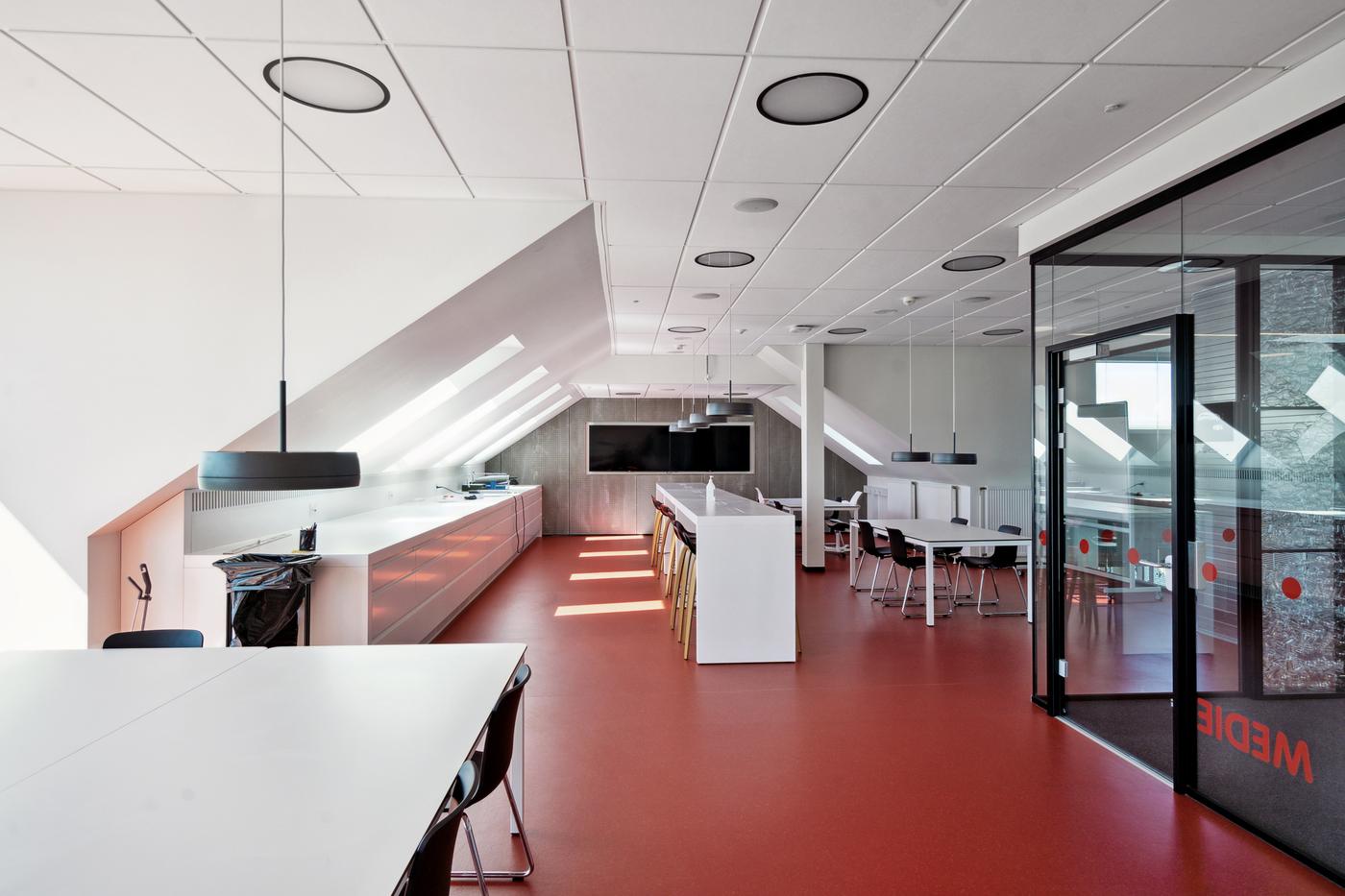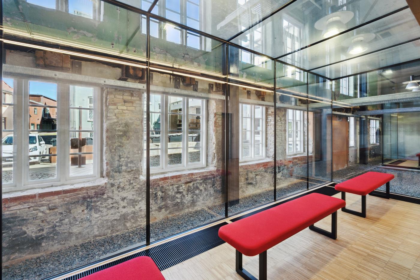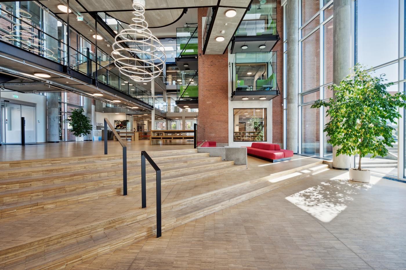 Bygningens ydre er en harmonisk fusion af traditionelle murstensfacader og moderne designelementer. Denne kombination giver bygningen et markant visuelt udtryk, der afspejler institutionens innovative karakter. Store glaspartier pryder facaden og bidrager til en åben og indbydende atmosfære.