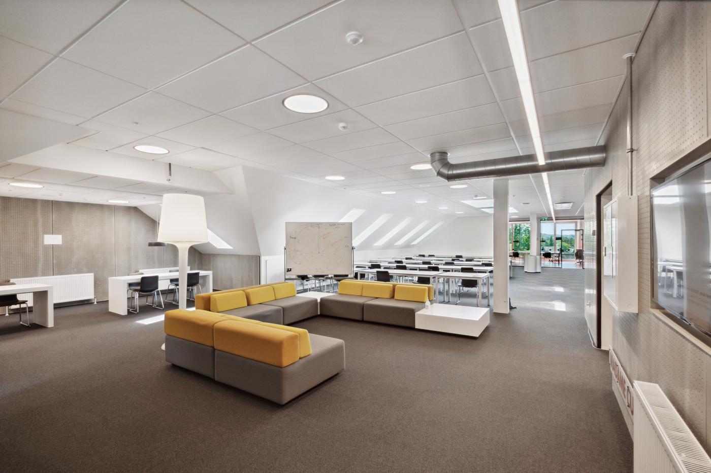 De åbne arealer omkring bygningen skaber en følelse af rummelighed og åbenhed. Der er gode parkeringsforhold for både studerende og personale, hvilket sikrer let adgang til institutionen. Udendørsområderne er velplejede og indbydende, hvilket skaber et behageligt miljø for alle besøgende.