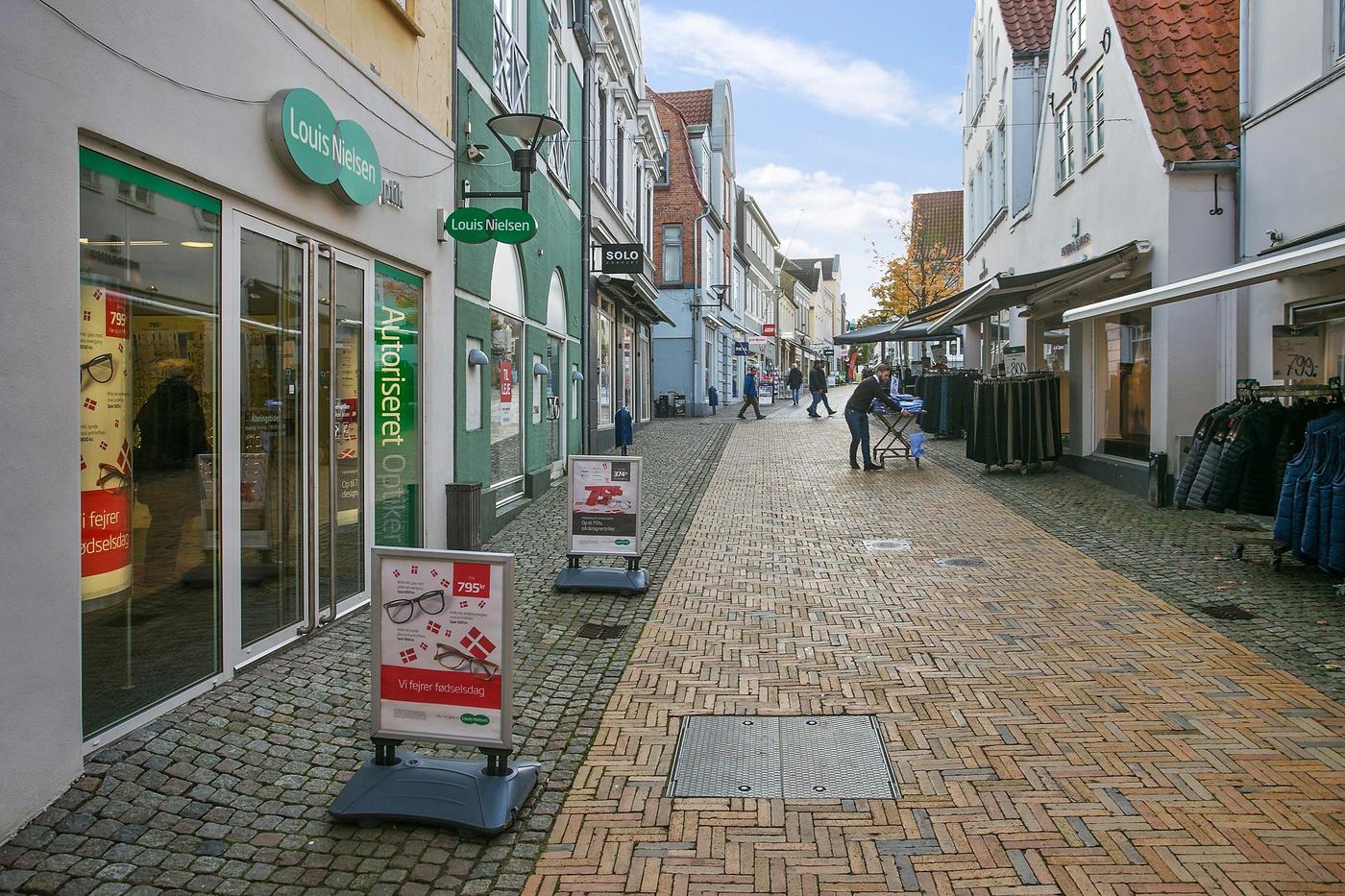 Lejemål på Aabenraa gågade, beliggende blandt dametøjsforretninger, herretøjsforretninger, skobutikker og legekæden. Lejemålet henvender sig til alle former for butik og har niveaufri adgang fra gågaden. Det fremstår pænt og lyst og indeholder regulært butikslokale, hvor der er let kan indrettes prøverum ved evt. at åbne op ved det tidligere synstest rum. Stort køkken/personalerum og kontor. Der er mulighed for at udvide lejemålet op til 75 m². Om Aabenraa: