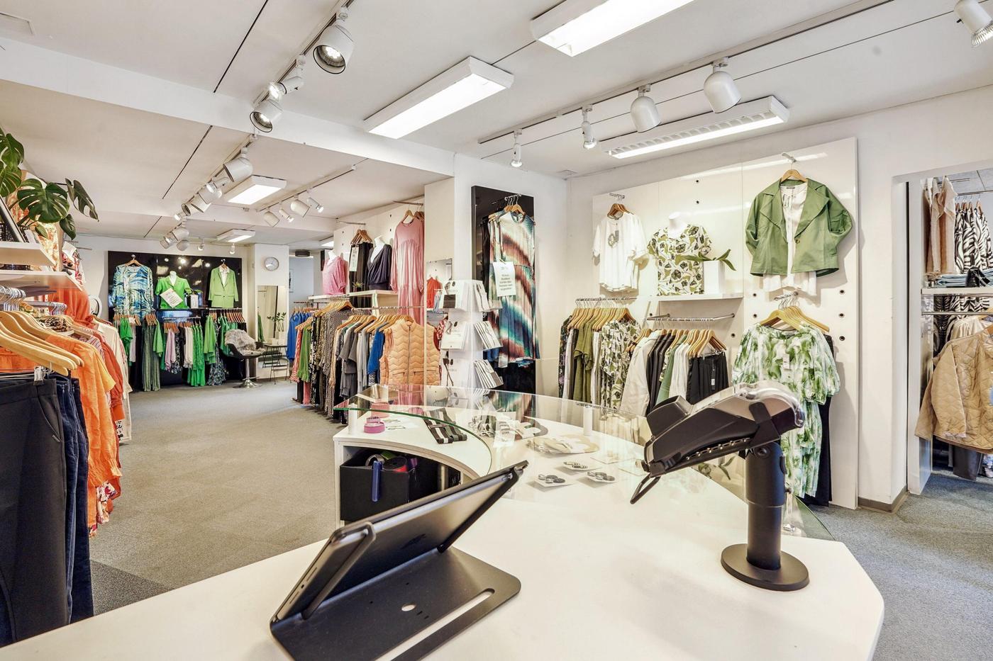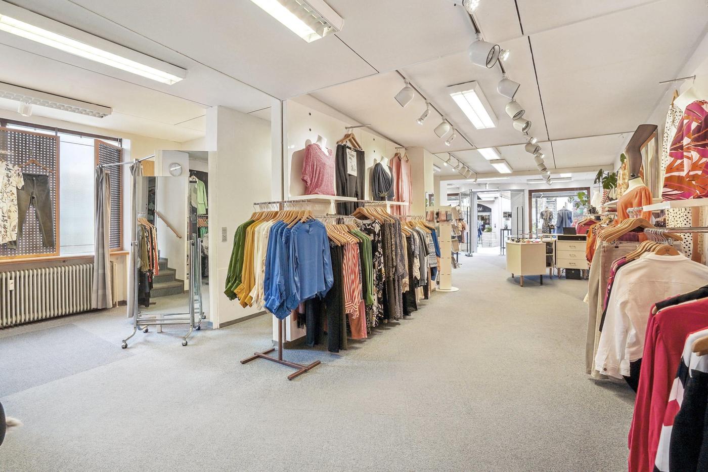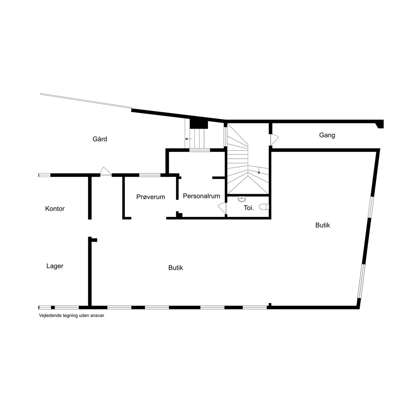 Der er 2 store facadevinduer til udstilling og indgang med glasdør. Butikken/salgsarealet er ét stort regulært lokale på 159 m². Bagerst i lokalet er der lagerfaciliteter samt kontor med udgang til baggård. Ydermere er der lager og personalerum med lille tekøkken og toilet.