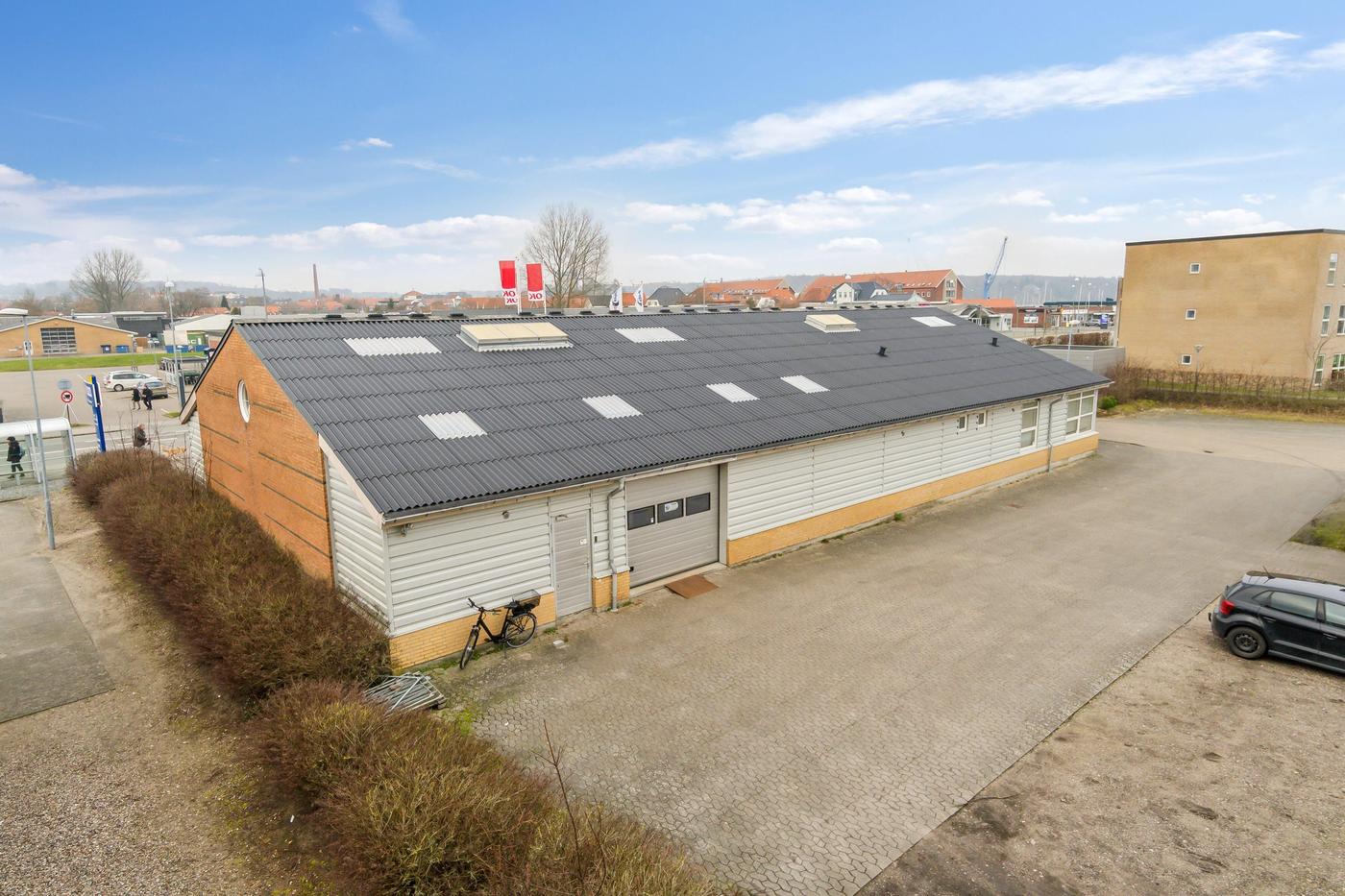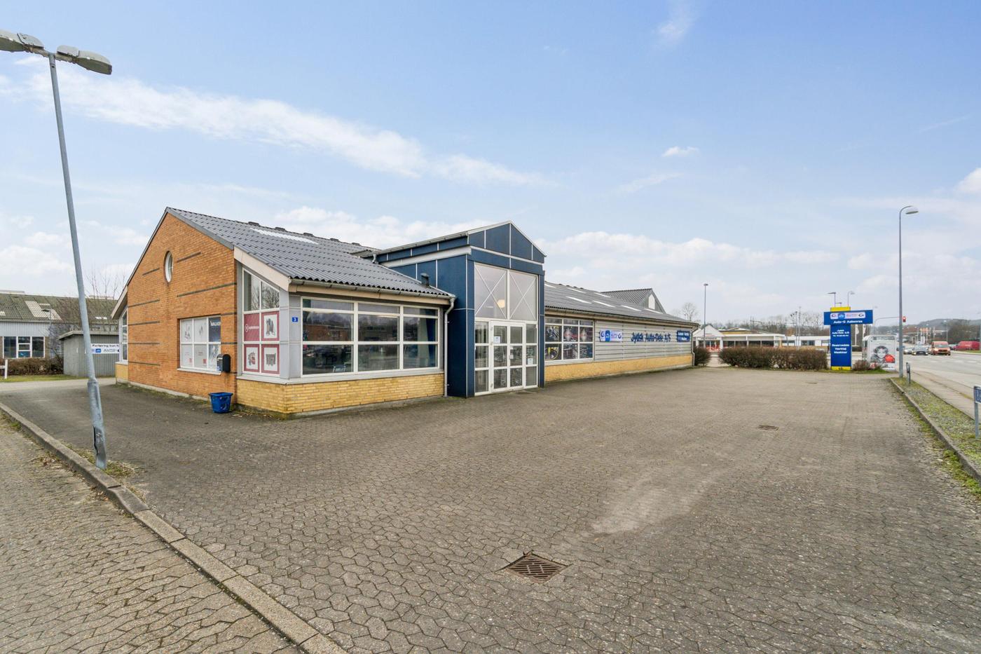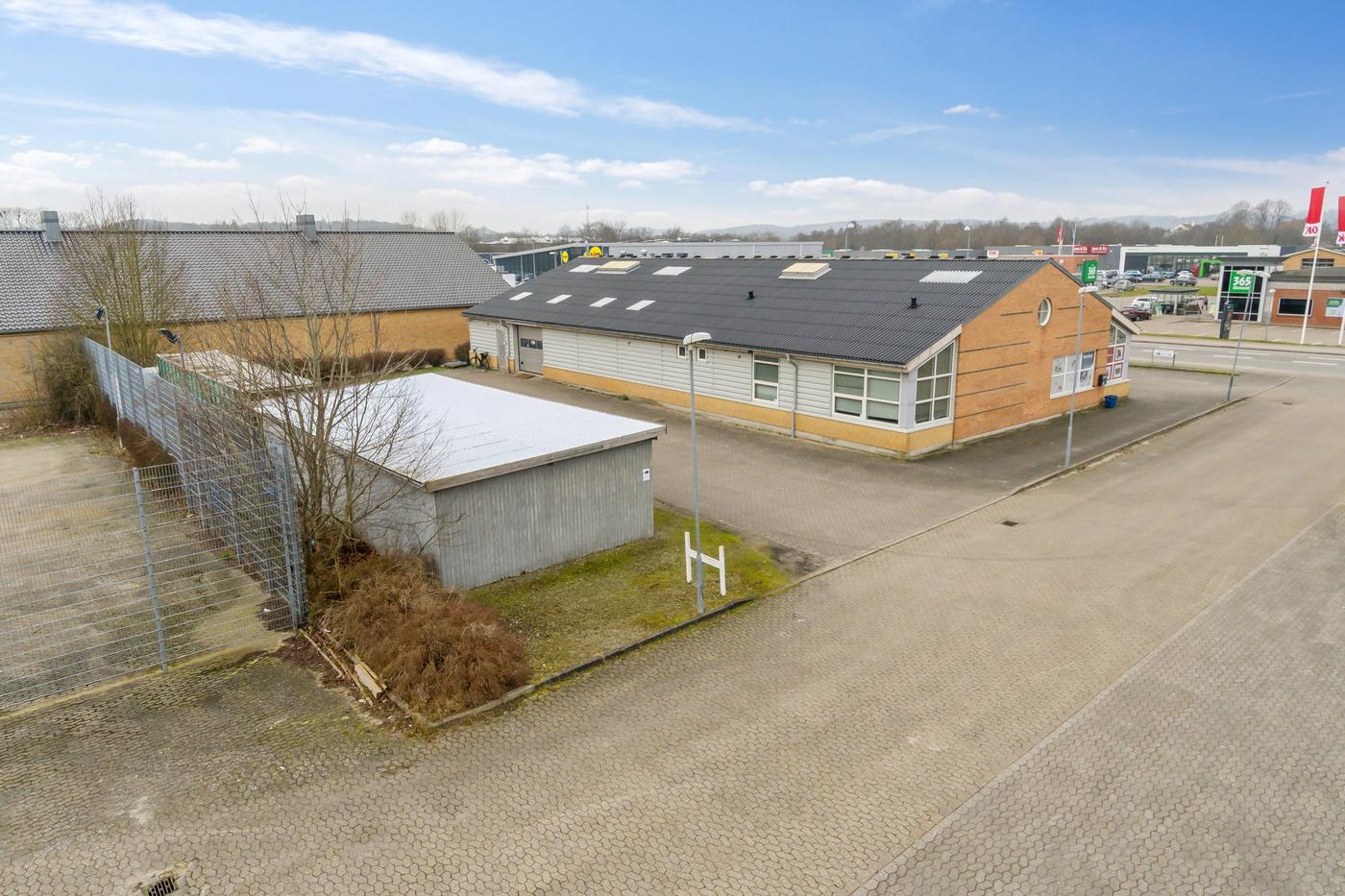 Beliggenheden er attraktiv og veludviklet, med høj kundestrøm fra flere dagligvarebutikker, kædebutikker, bilforhandlere m.fl., hvilket gør området til et aktivt og dynamisk erhvervsområde.