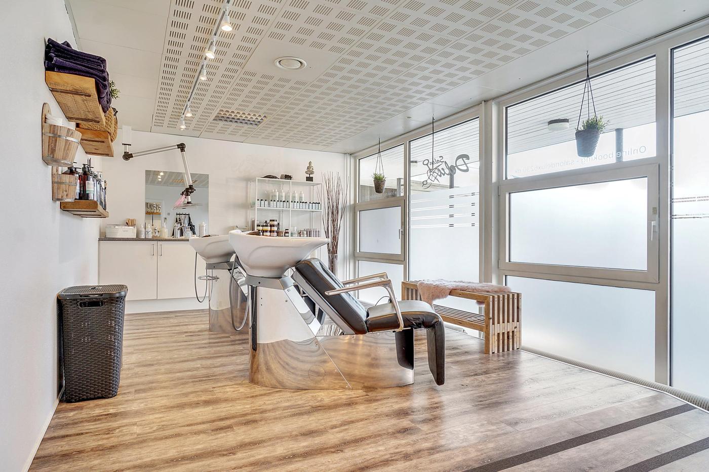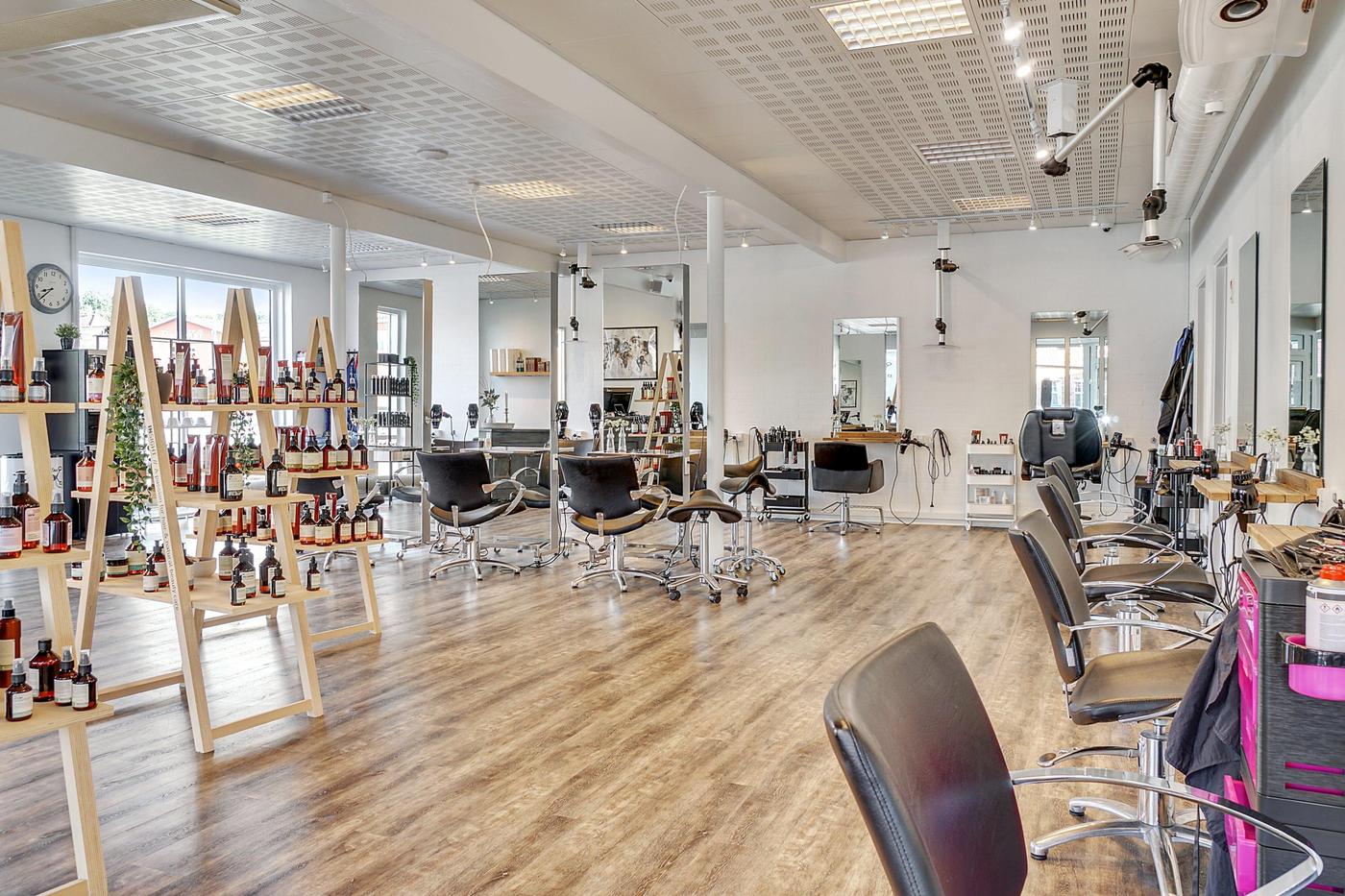 Frisørsalonen er indrettet med indgang fra parkeringspladsen til vindfang, med videre adgang til salonen, som er med utrolig dejligt lysindfald fra flere vinkler. Derudover er der baglokaler med personalerum, toilet og lager. Udover frisørsalonen har Nordea en hæveautomat i bygningen, som de selv sørger for at vedligeholde og passe.