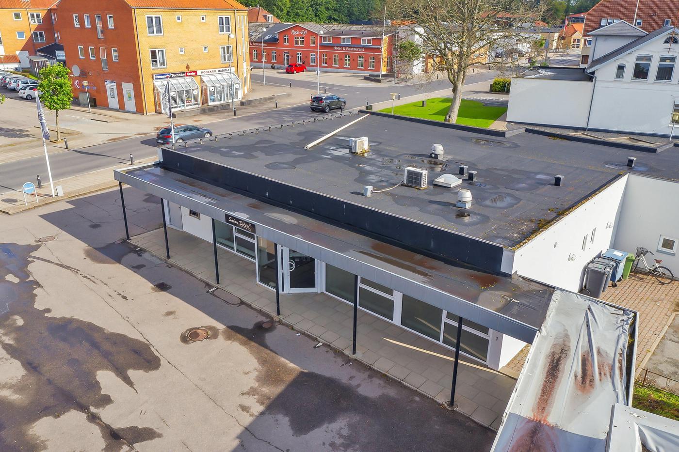 Ejendommen er beliggende midt i Rødekro centrum, med facade til Hærvejen og i øvrigt i flot stand med asfalteret parkeringsareal rundt om ejendommen.