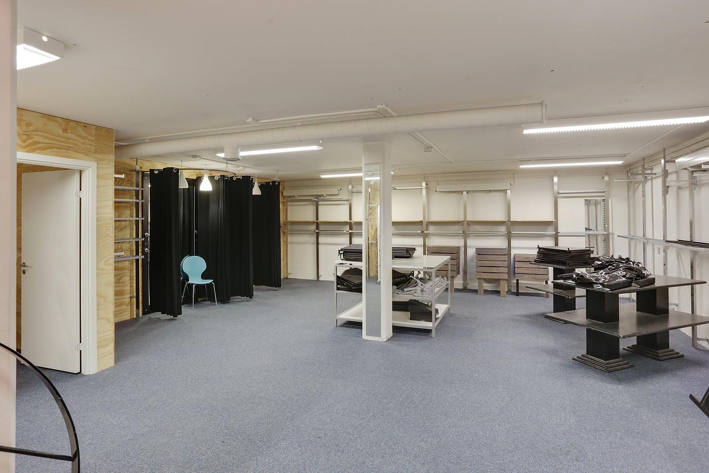 Butikken fremstår i flot og indbydende stand med lyse betongulve, god loftshøjde og ovenlysvinduer i den bagerste del af butikken.