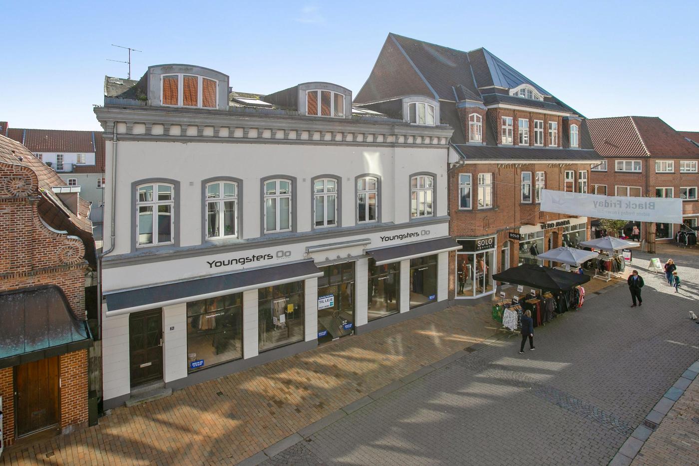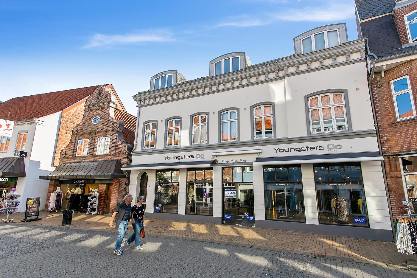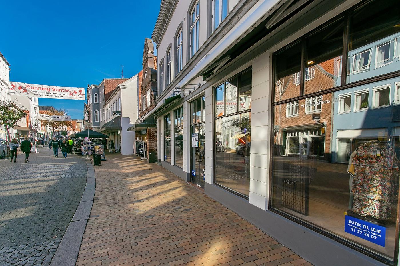 På en af de bedste placeringer i byen udlejes dette flotte erhvervslejemål, som en samlet enhed eller opdelt i to enheder. Lejemålet har for år tilbage været anvendt af FONA og efterfølgende til tøjbutik. Den specielle indretning giver rig mulighed for en spændende butik, ligesom en eksklusiv afdeling eller showroom kan indrettes i den del af butikken, som er i kælderniveau.