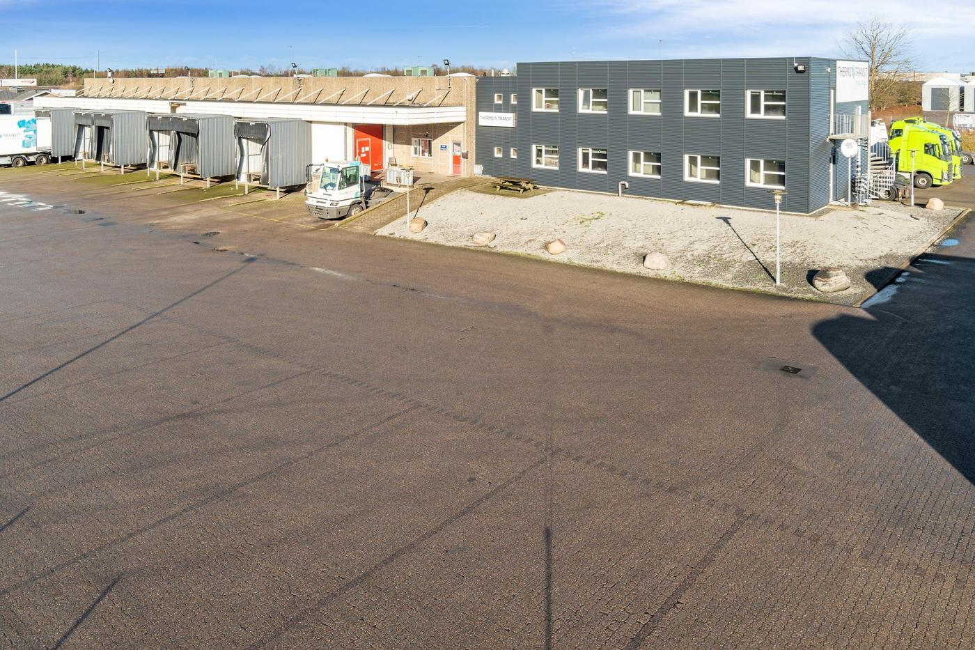 Særdeles velbeliggende lager-/logistikejendom tæt på den sønderjyske motorvej i logistikcentret Padborg med gode tilkørselsforhold. Bygningen indeholder et administrationsafsnit med kontorfaciliteter i forskellige variationer ift. storrumslokaler, cellekontorer, mødelokaler og kantine på i alt 380 m2, dertil kommer omklædnings- og personalefaciliteter i kælderen på i alt 170 m2. Administrationen er i to etager og mellem administrationen og lageret er der lavet et trappetårn, som giver muligheder for at gå på lageret direkte fra administrationen. Lageret på i alt 1.362 m2 er meget regulær og med god loftshøjde. Der er ramper på den ene side af bygningen samt sluseporte på den anden side. Lageret er hidtil blevet brugt som kølelager. Køleanlægget er stadig funktionsdygtigt. Til ejendommen er der i alt 10.072 m2 grund. Udenomspladsen er dels udlagt til p-pladser og dels til store manøvrearealer og tilkørsel for lastbiler. Restarealet er udlagt med græs. Hele ejendommen er indhegnet med elektrisk port og befæstet med fliser.