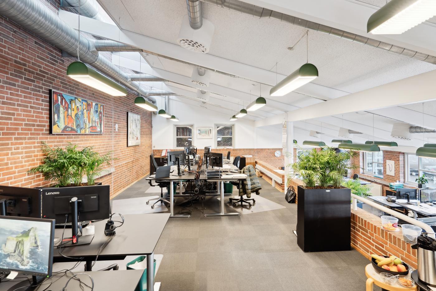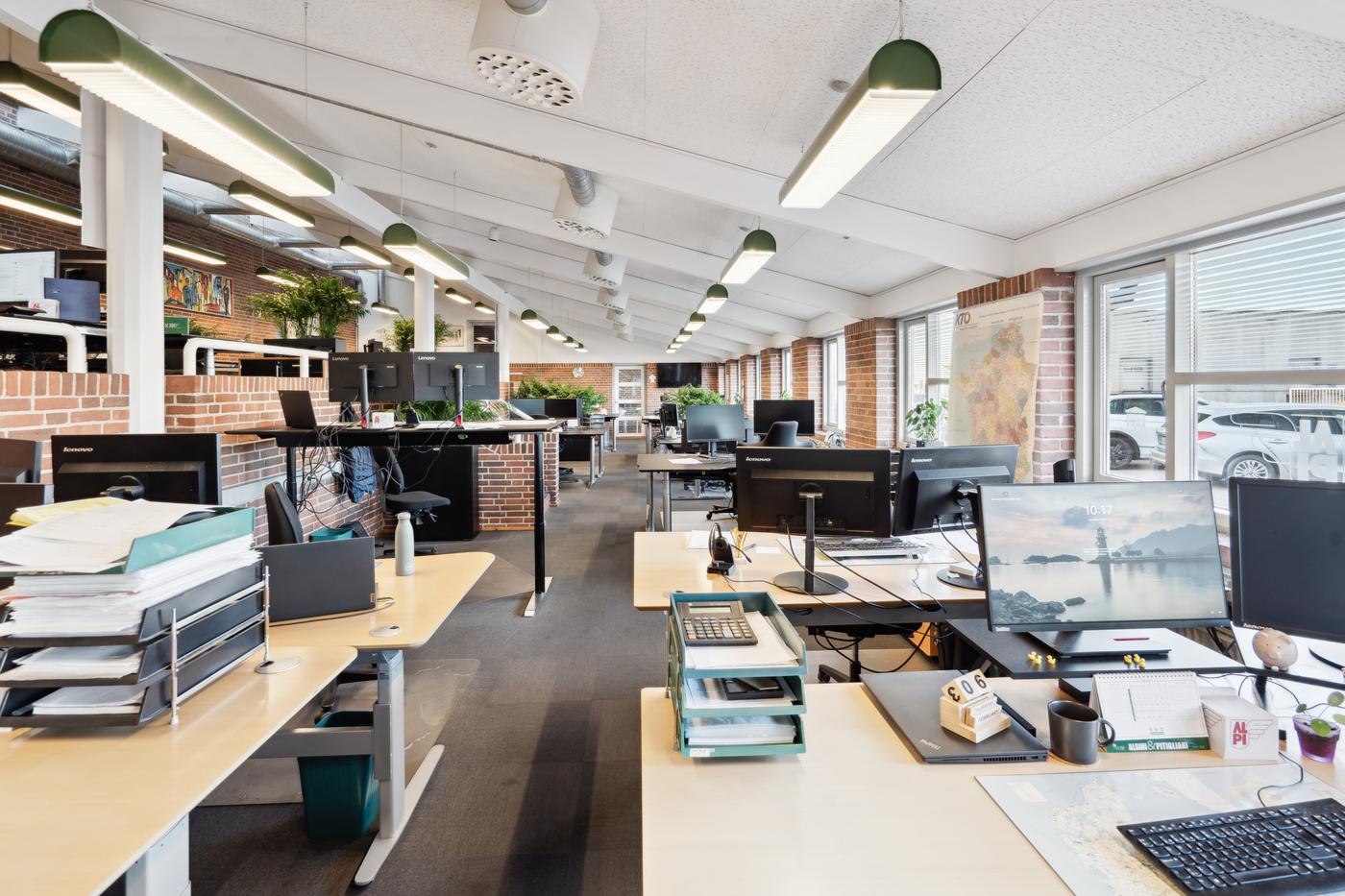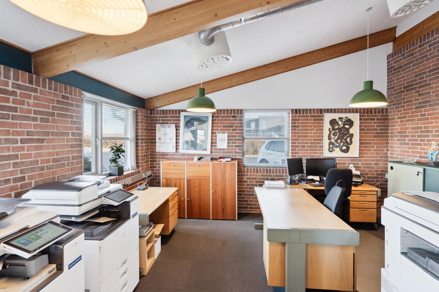 Til kontorbrug som blev moderniseret for ca. 2 år siden er der ca. 350 m2 til rådighed, samt en kælder på ca. 150 m2, der bruges til arkiv, toiletter og bad. De gode tilkørselsforhold og faciliteter som sluseporte til af- og pålæsning, samt muligheden for sideværts af- og pålæsning, gør ejendommen yderst funktionel.