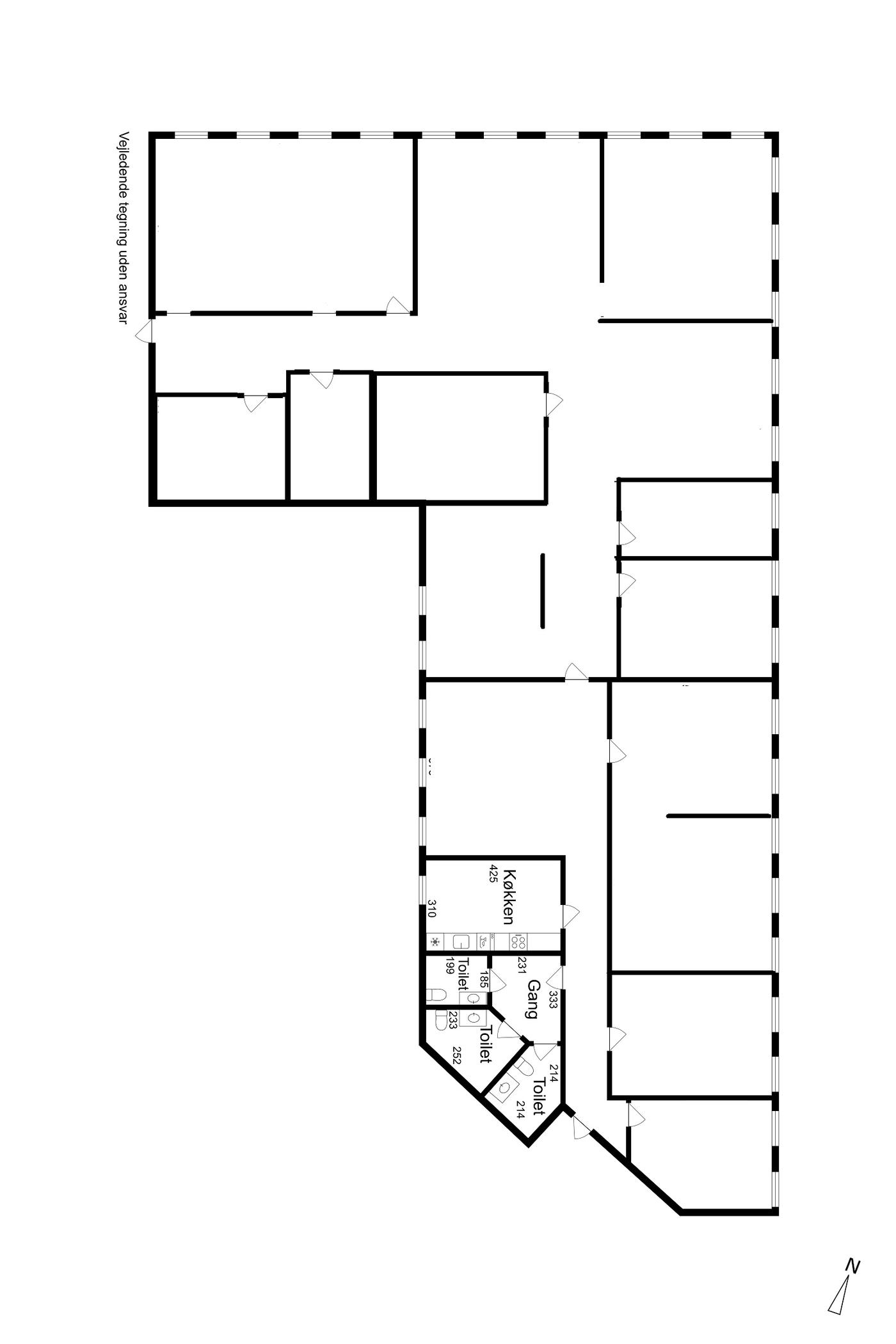Lejemålet tilgås via indgang direkte fra den store parkeringsplads til en præsentabel hall med ståltrappe til 1. sal, hvor lejemålet er beliggende. Herfra er der adgang til en fordelingsgang med mødelokaler og personalefaciliteter i den forreste del samt storrumskontorer i den bagerste del. Den nuværende indretning er udført i lette konstruktioner, hvilket giver gode muligheder for tilpasning til lejers ønsker og behov.