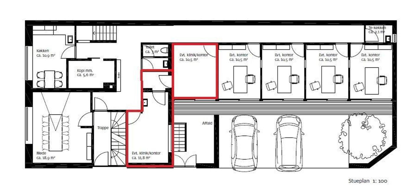 Der er flere lejemål omkring lokalet, hvilket gør det muligt også at leje flere lokaler.