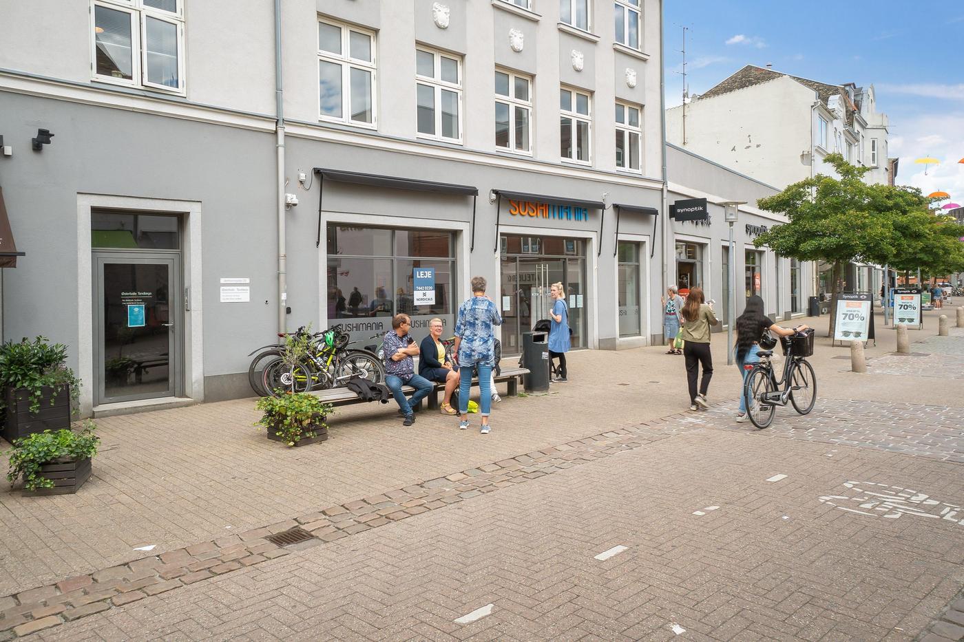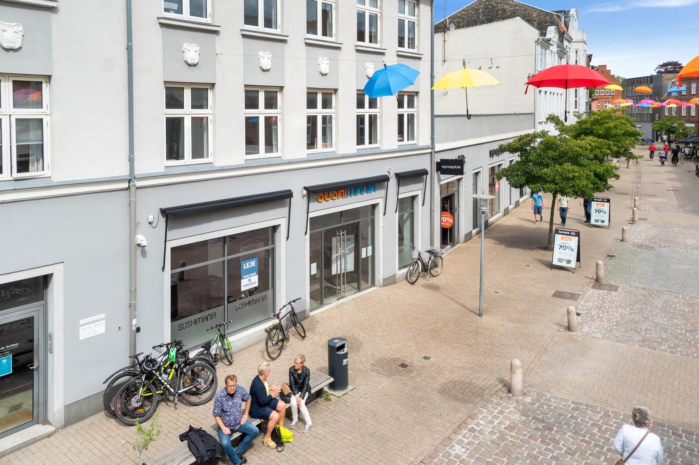 Velbeliggende og synligt erhvervslejemål midt i Sønderborg centrum, med Lagkagehuset som nabo.