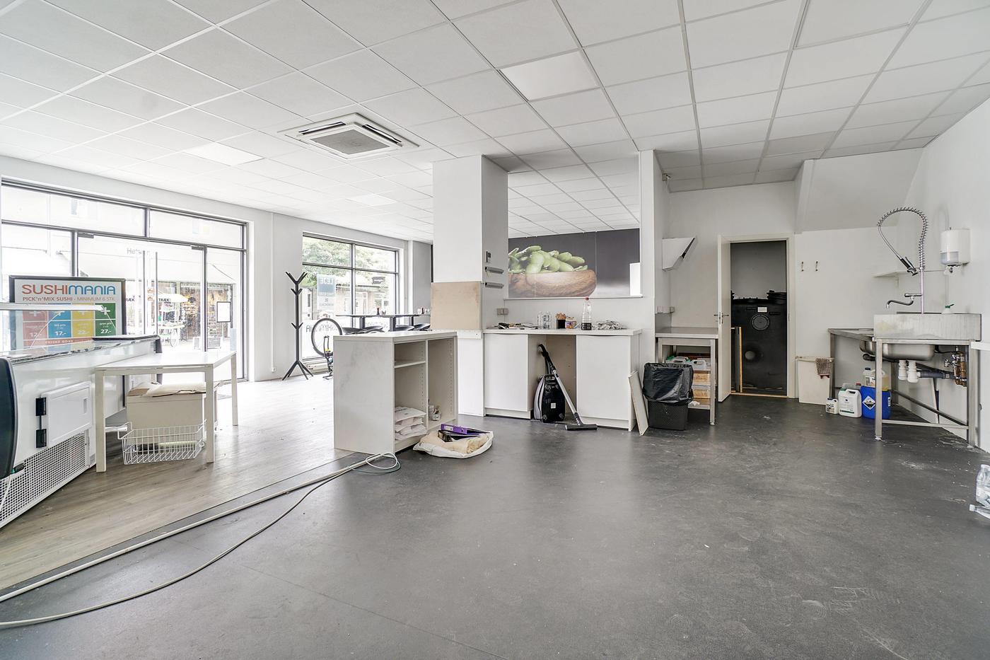 Indretningen er med niveaufri indgang fra Jernbanegade, via dobbelt glassvingdøre, hvor der i stueplan findes regulært lokale på cirka 120 m², som senest har været indrettet til Take-away med enkelte siddepladser. Via indvendig trappe er der adgang til 1. sal, hvor alle personalefaciliteter findes, i form af personaleomklædning med toilet, kundetoilet, stort køkken med plads til spisebord, kontor og opbevaringsplads på gangarealet.