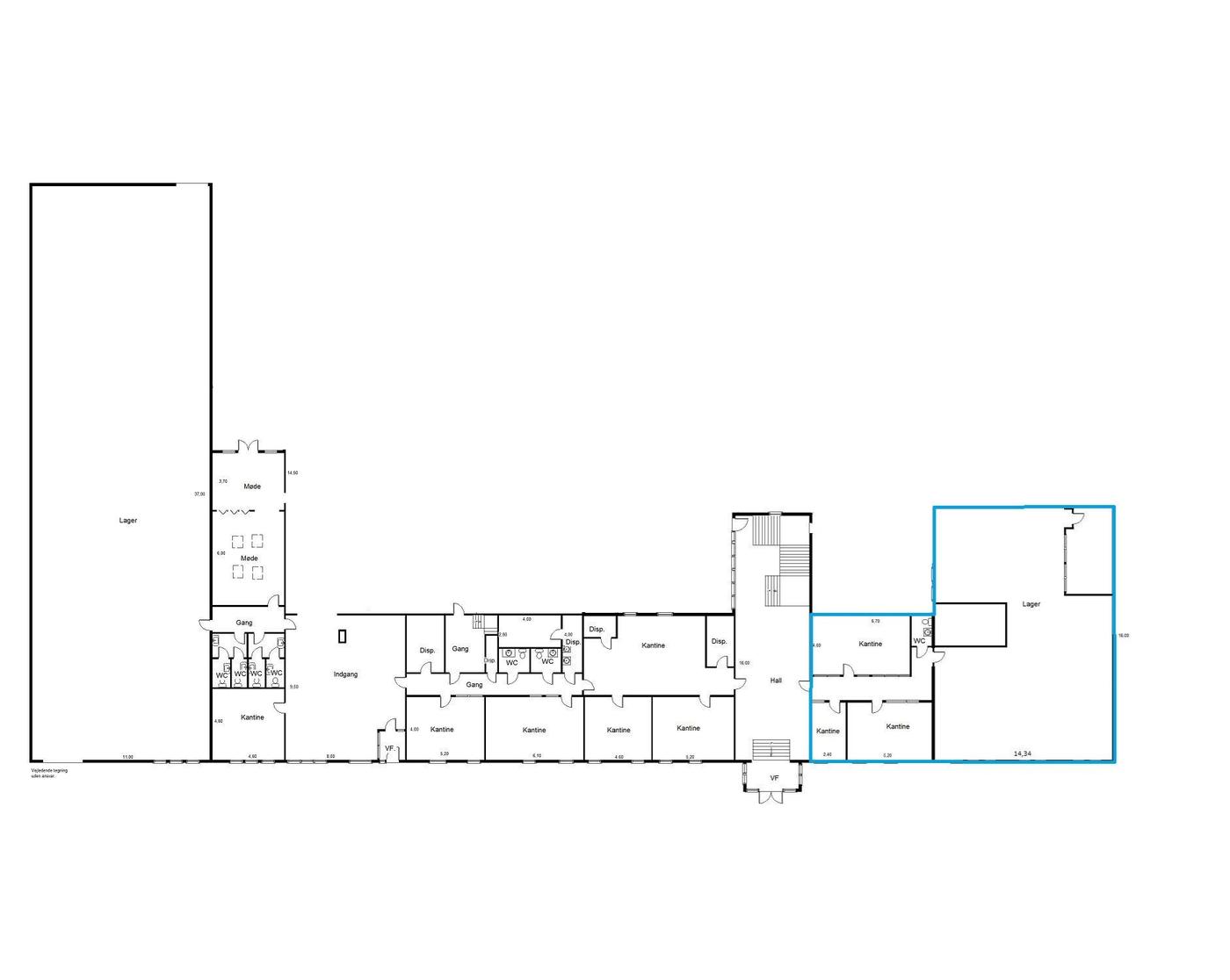 Lejemålet består af en fordelingsgang med adgang til 3 gode kontorlokaler samt eget toilet. Kontorlokalerne som alle er veludstyret med kabelbakker, har alle glasvinduer ud mod gangen, som er med til at gøre lejemålet til et lyst og mere åbent arbejdsmiljø. Kontorlokalerne istandsættes efter lejers behov. For enden af fordelingsgangen er her adgang til et lagerlokale på ca. 264m² med masser af god plads til opbevaring.