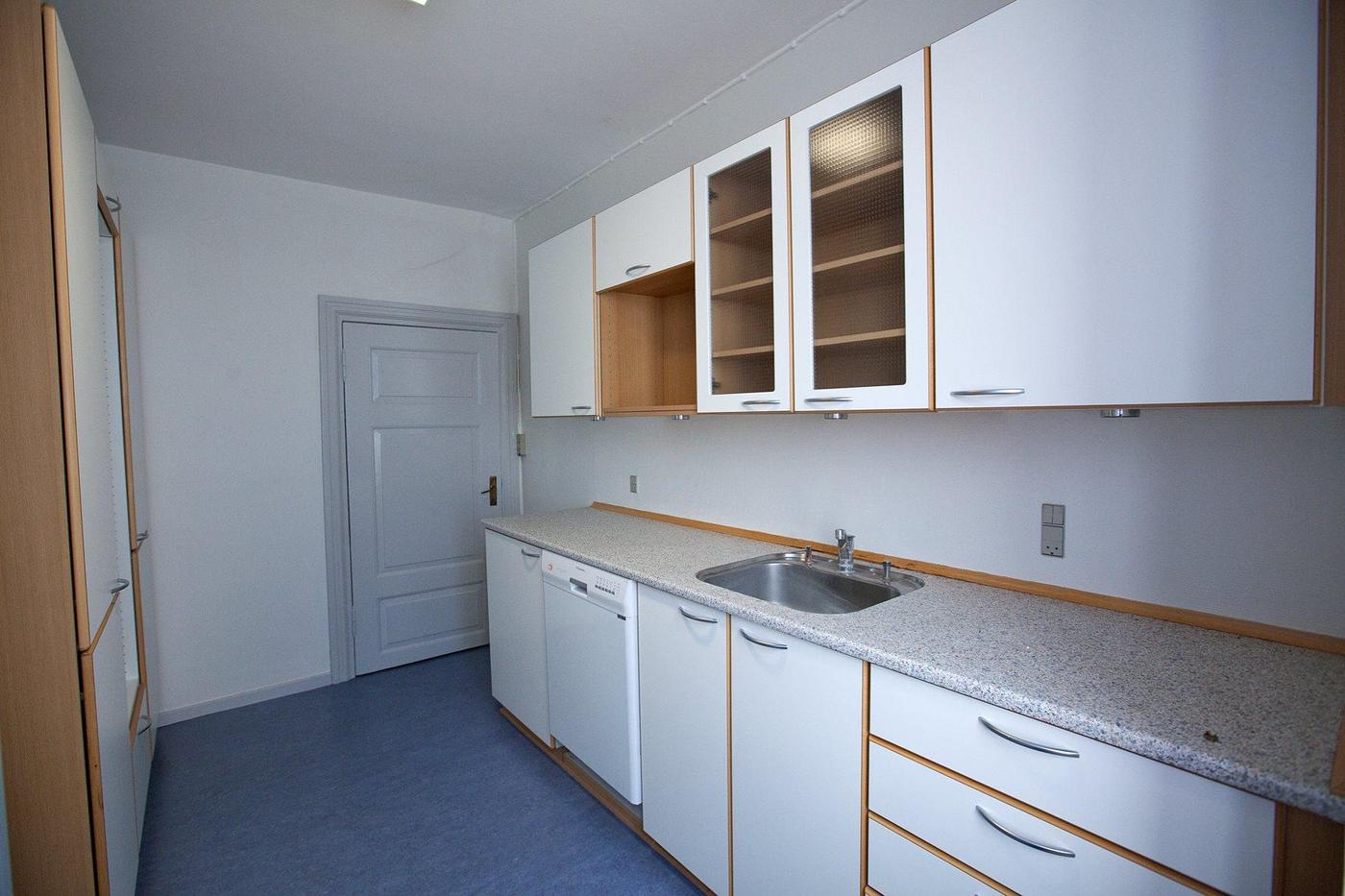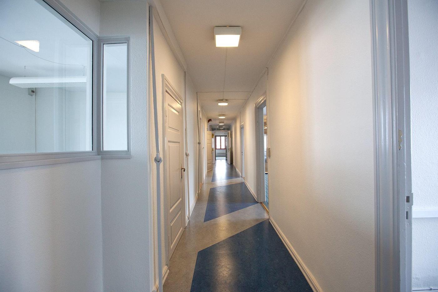 Fællesarealerne er en fordelingsgang med linoleum samt køkken og 2 toiletter.