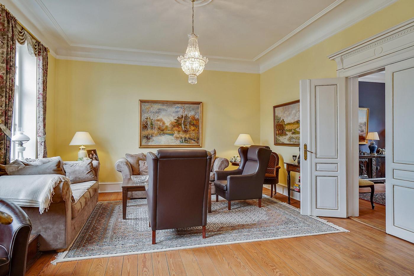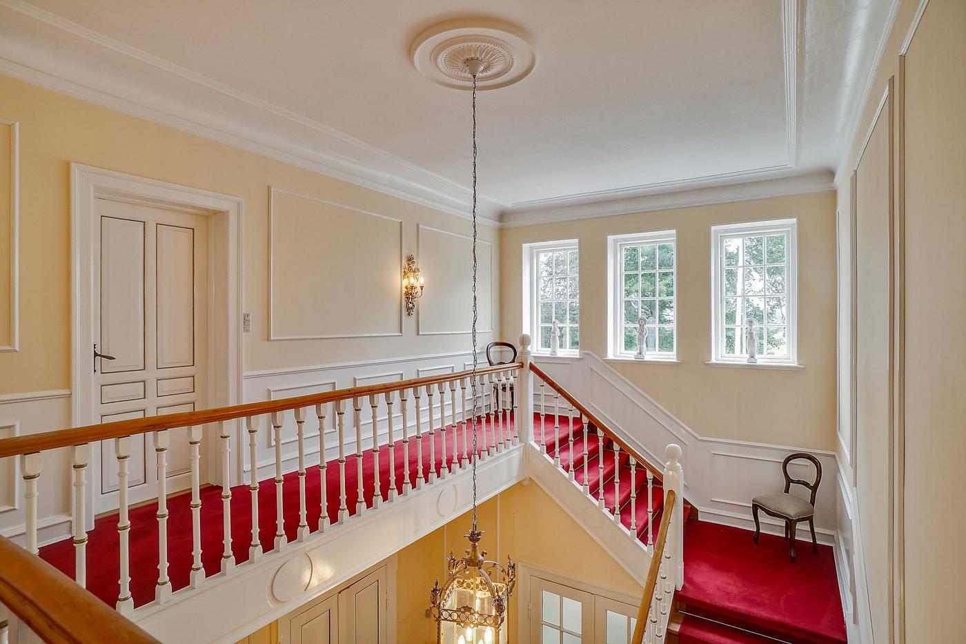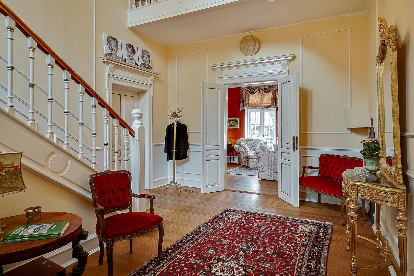 Stueplan og 1. sal er restaureret med respekt for ejendommens arkitektur og byggestil. Her kan bl.a. fremhæves de højloftede rum med stuklofter, samt store sprossede vinduespartier, fyldningsdøre, paneler og gerigter. I stueplan har ejendommen en stor hall i forbindelse med hovedindgangen. Fra hallen er der adgang til etagens 3 sammenhængende stuer, samt gang til supplerende værelser, stort køkken og badeværelse og bagindgang.