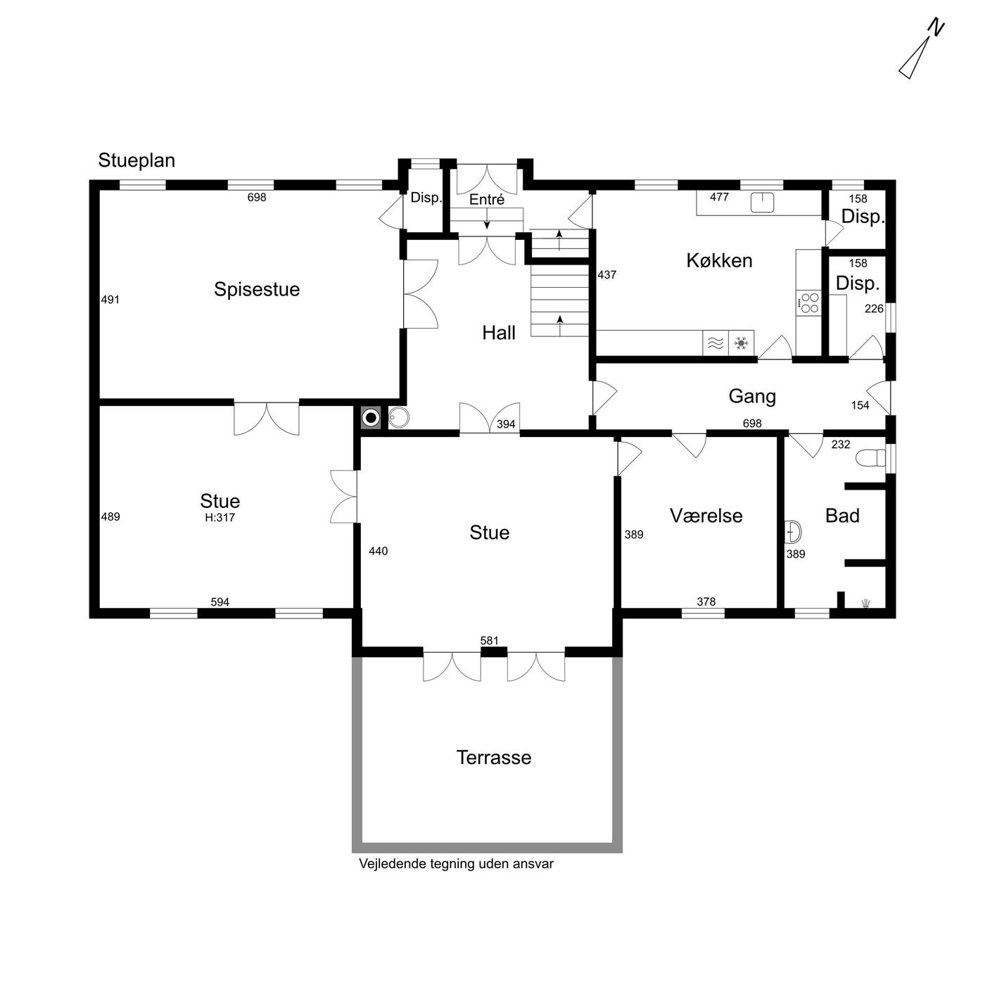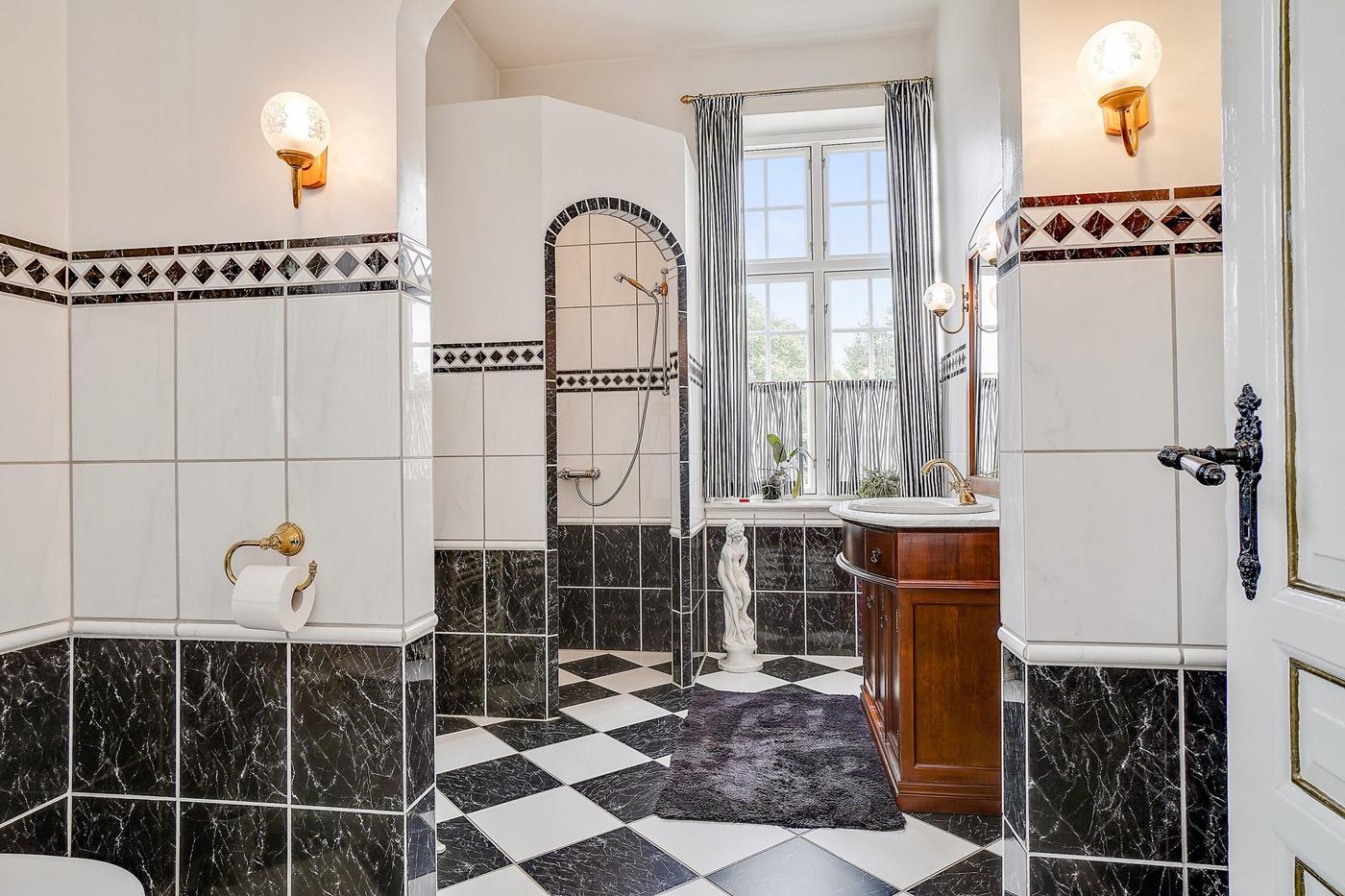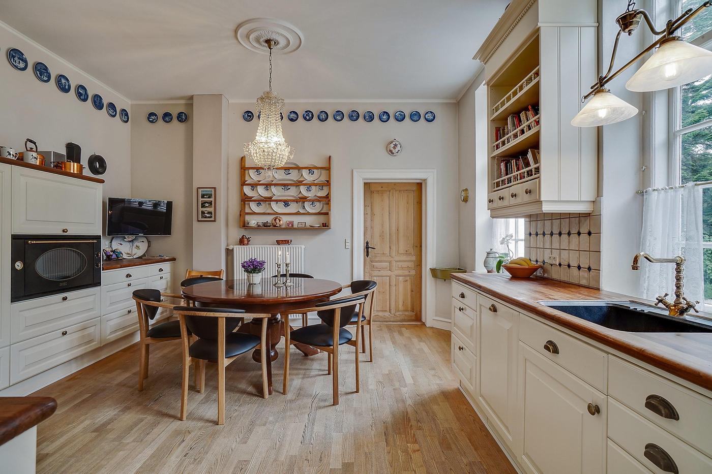 Stueplan og 1. sal er restaureret med respekt for ejendommens arkitektur og byggestil. Her kan bl.a. fremhæves de højloftede rum med stuklofter, samt store sprossede vinduespartier, fyldningsdøre, paneler og gerigter. I stueplan har ejendommen en stor hall i forbindelse med hovedindgangen. Fra hallen er der adgang til etagens 3 sammenhængende stuer, samt gang til supplerende værelser, stort køkken og badeværelse og bagindgang.