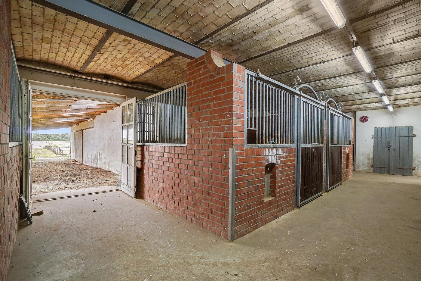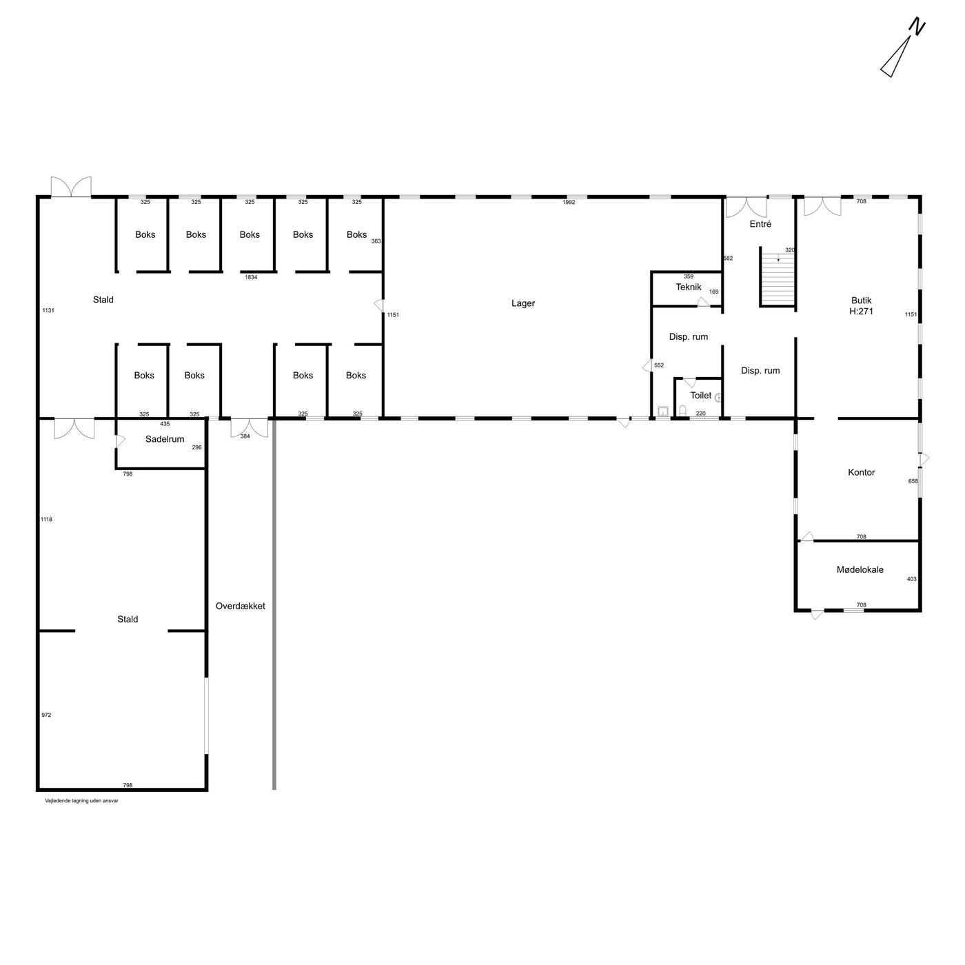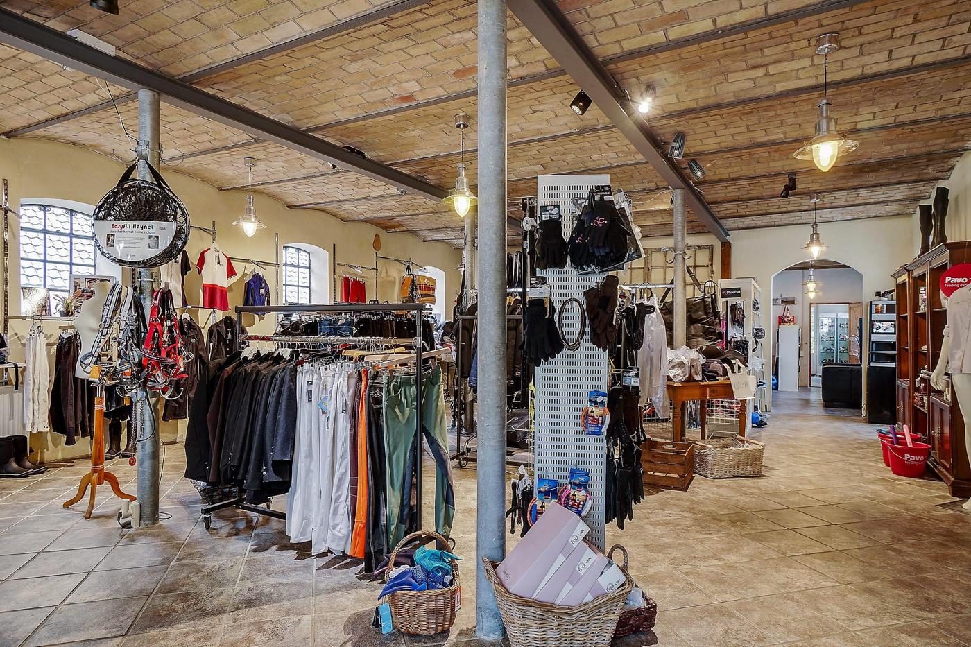 Ejendommen indeholder istandsatte kontor/butikslokale i stueplan med tilhørende lager-/udstillingslokaler. Fra lageret er der adgang til hestestald med ca. 8 hestebokse. P.t. foreligger godkendelse til 4 heste og 1 føl.