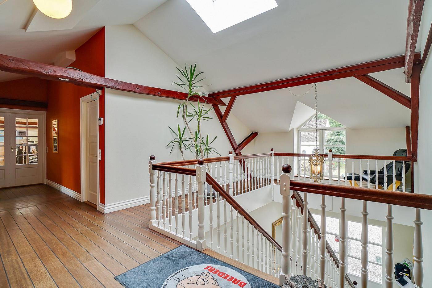 Ejendommen, der kun ligger få km. fra Haderslev, består af en enestående og stor bolig i to plan. De tilhørende bygninger hvoraf hovedparten ligeledes er istandsat, rummer flotte erhvervsarealer, der bruges til showroom, kontor og lager. En del af bygningen indeholder tillige 8 hestebokse.