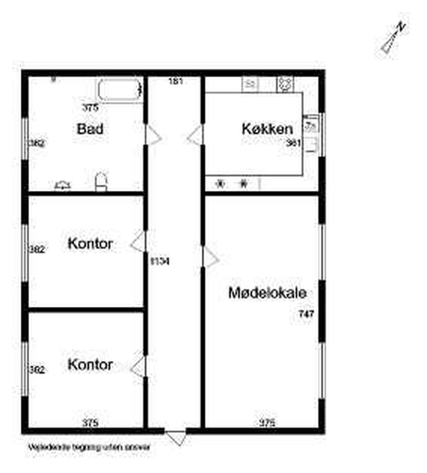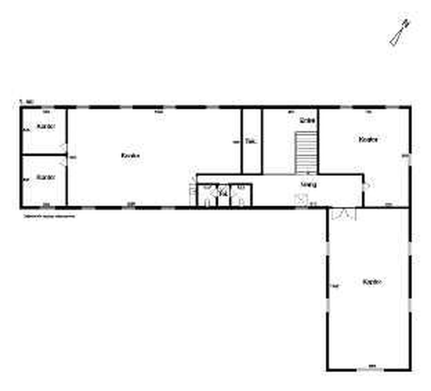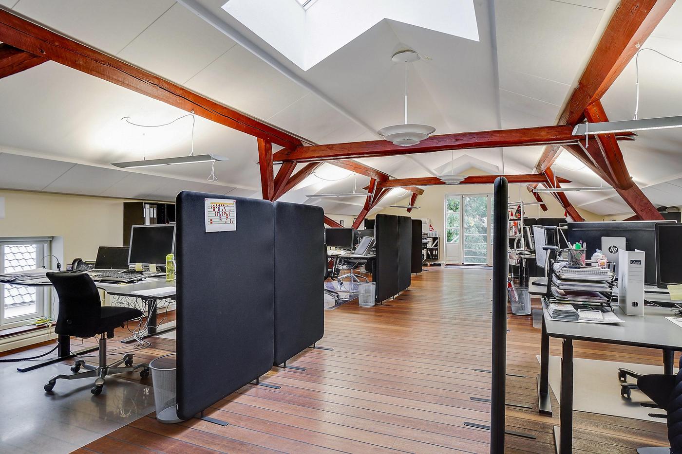¾ af 1. salen indeholder istandsatte kontorlokaler med egen indgang i stueplan. Lejemålet er med flotte mahognigulve lagt som skibsplankegulv med sorte fuger. Loftet er ført til kip med synlige bjælker fra konstruktionen. Vægge og lofter er udført i gipsplader og i tagryggen er der indlagt flere vinduespartier som giver lokalerne ekstra lysindfald.