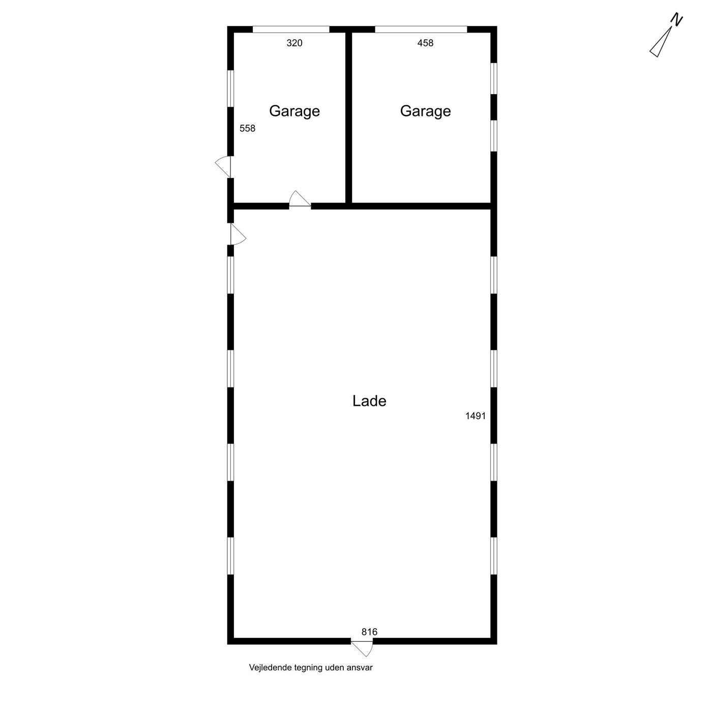 Laden og maskinhuset er bygget i forlængelse med ovenstående erhvervsbygning der tidligere var staldbygning. Laden er bygget med konstruktion i jernspær og bølgeblikplader på bygningens sider, samt bølgeeternitplader på tagfladen. Laden er uisoleret og med fast betongulv. Bagerst i laden er hele ejendommens varmeforsyning placeret. Varmeforsyningen består af et nyere fuldautomatisk brændselsfyr med træflis som brændsel.