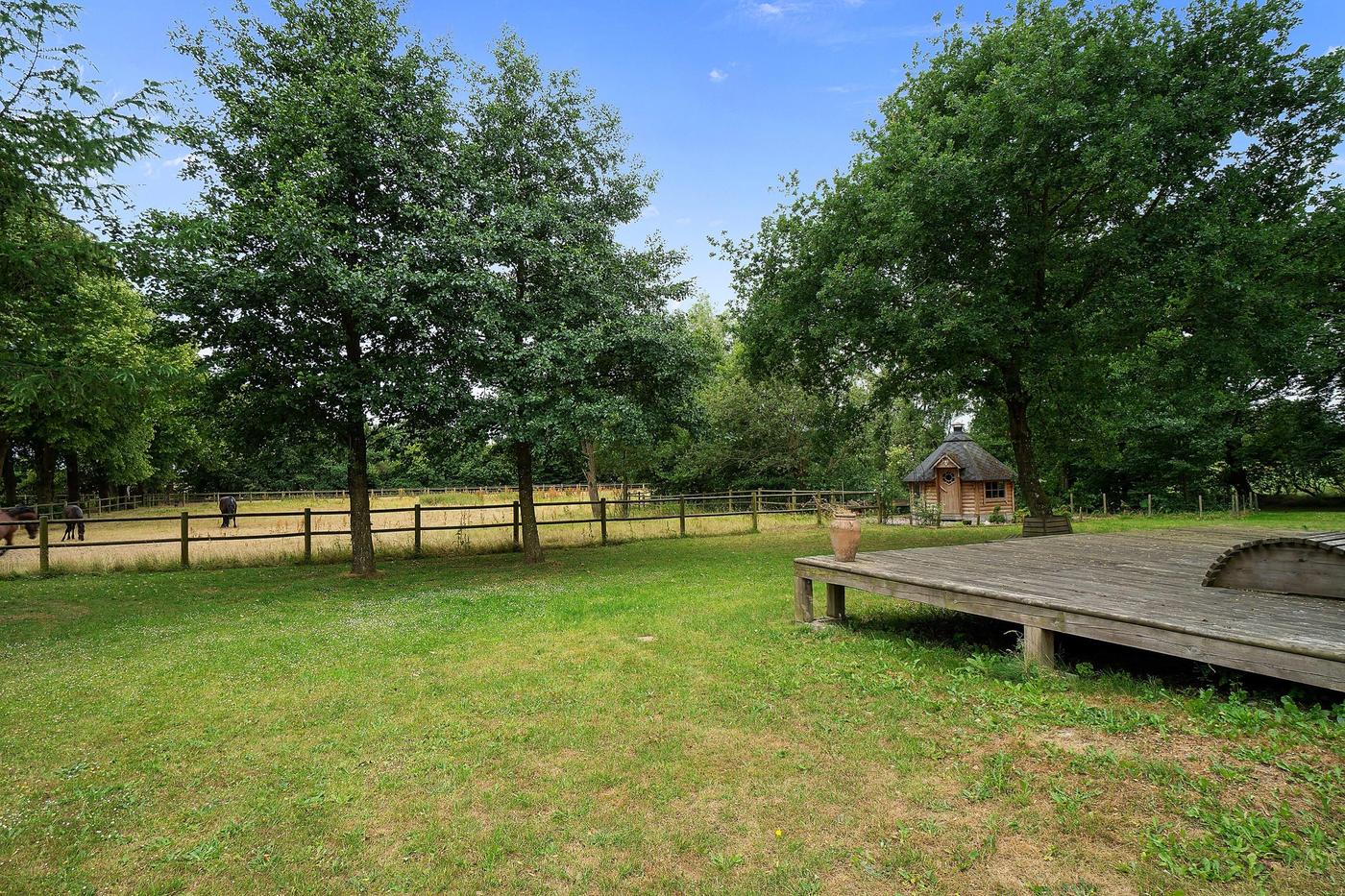 Omkring herskabsboligen er der store græsplænearealer omkranset af haveanlæg og store træer. Bagerst i haven er anlagt en lille sø. Bag sidebygningen, med hesteboksene er der store indhegnede friarealer til hestene, og der er anlagt ridebane. Nuværende ejer har lejet tilstødende marker hos Haderslev Kommune.