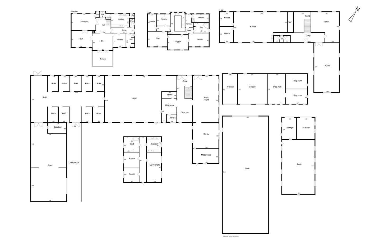Den samlede ejendom består af i alt 5 bygninger, som her beskrives nærmere:
