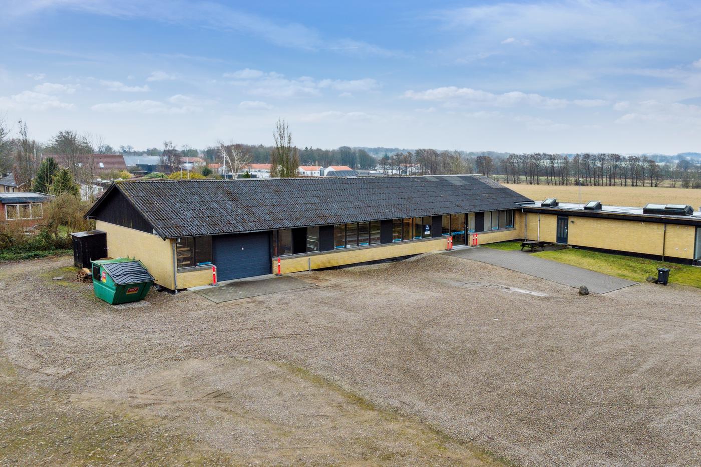 På en stor og velbeliggende grund i naturskønne omgivelser finder du denne alsidige og meget velholdte erhvervsejendom, der i dag anvendes til værksted, lager og kontor. Ejendommen er velegnet til mange former for erhverv, herunder lager, produktion eller håndværksvirksomhed.