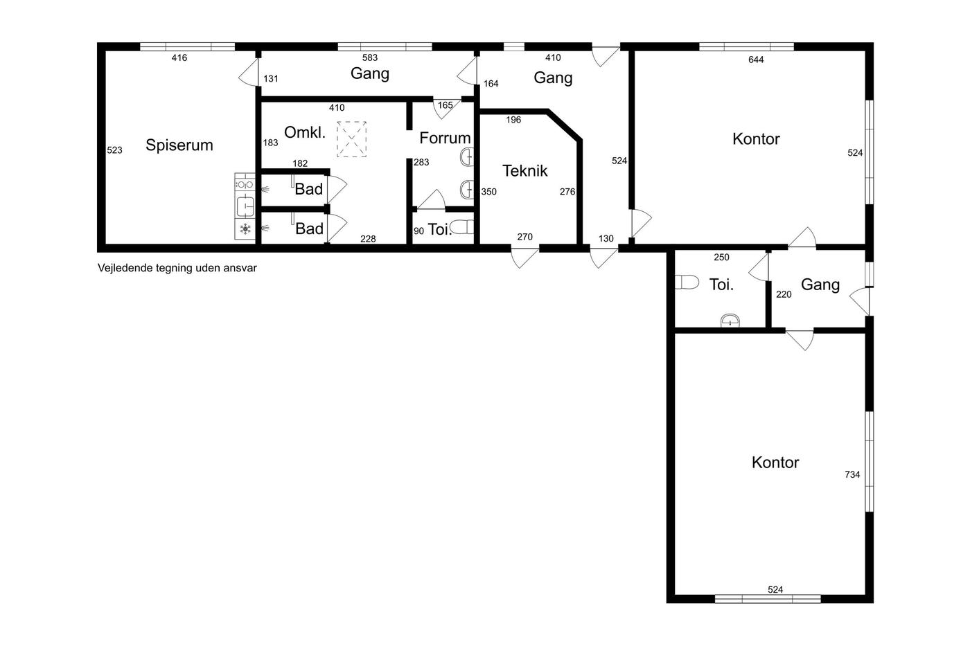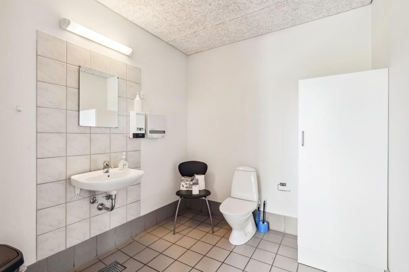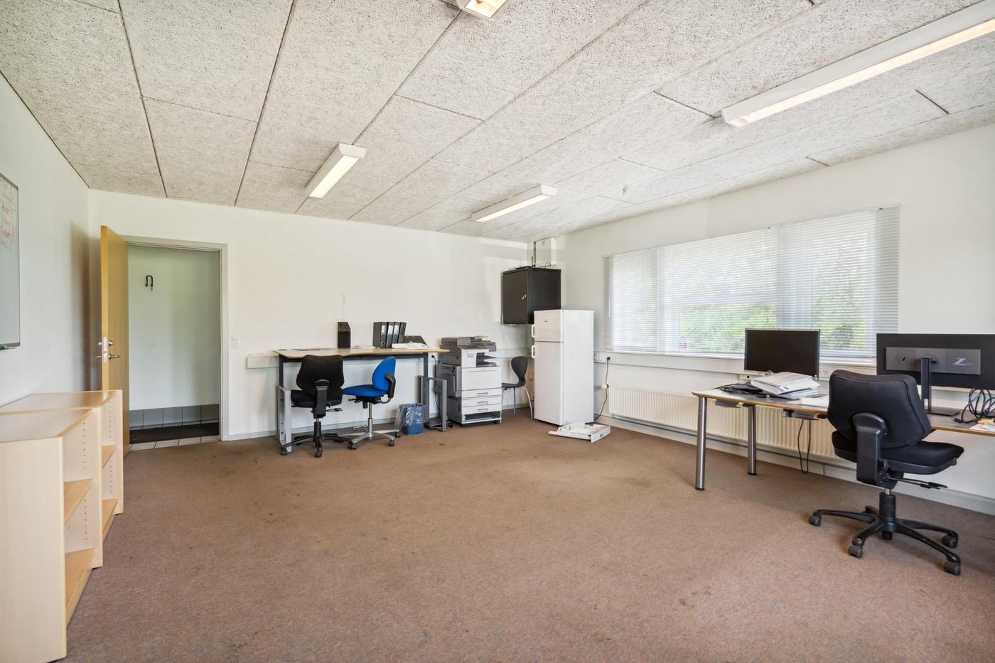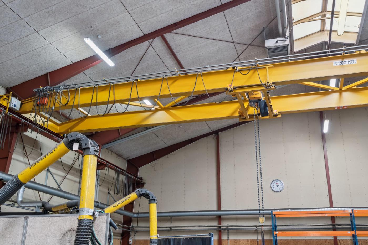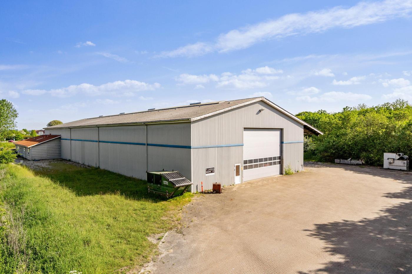 Hallen som vil være velegnet til produktion, værksted eller lager er opført i år 2000, med stålspær, isoleret og beklædt med plader, dermed er der et minimalt løbende vedligeholdelsesarbejde på bygningen. I tagrygningen er der ovenlysvinduer, som giver et rigtig godt lysindfald i hallen. I hallen er der en traverskran i fuld længde, med bæreevne på 3,2 tons. I forlængelse af lageret er ligeledes i år 2000 opført kontor og mandskabsrum med frokostrum, omklædning, toiletter og kontor. På den ene langside er der overdækning.