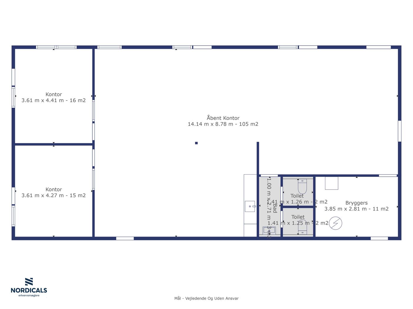 Beskrivelse: Lejemålet består af 150 m² kontor med mulighed for at få tilbygget op til 250 m² lagerhal efter nærmere aftale. Spritnyt og stilfuldt kontormiljø, beståede af to mindre kontorer samt et storrumskontor. Perfekt til den ambitiøse virksomhed, der ønsker at kombinere funktionalitet, synlighed og moderne faciliteter. Ligeledes er der masser af parkeringspladser lige ved døren.