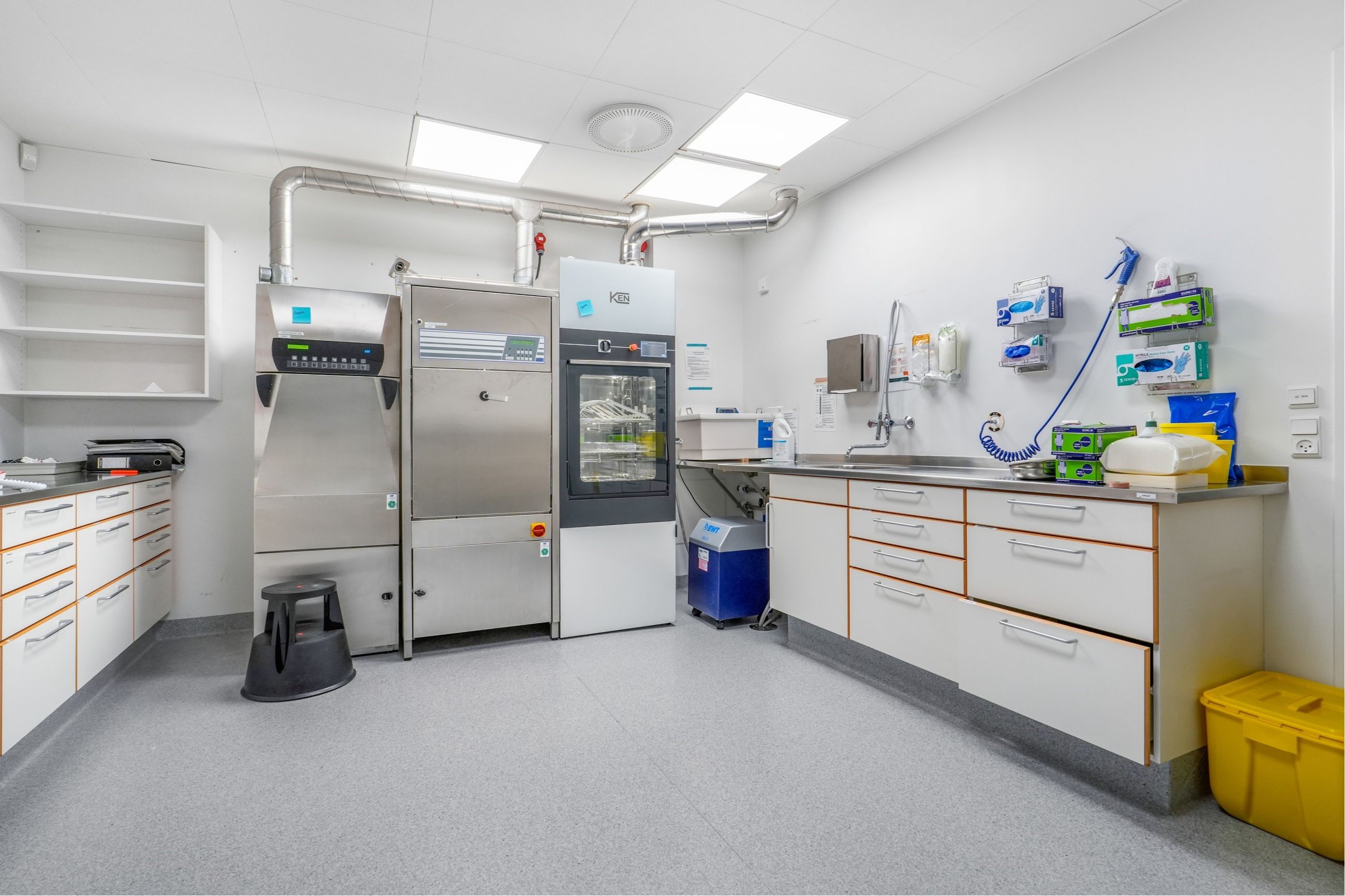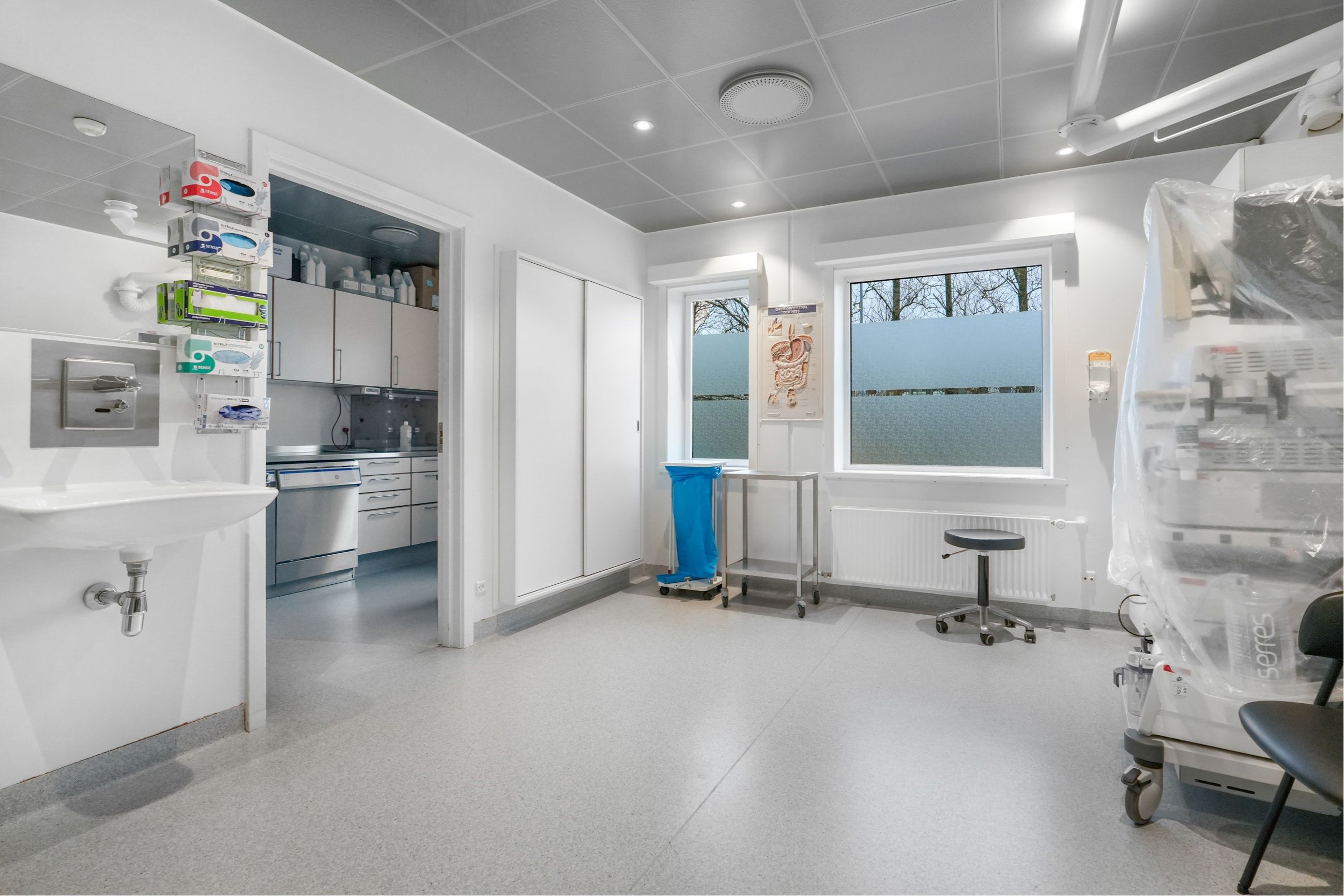 Der er 3 operationsstuer og de andre stuer er indrettet med håndvask samt toilet med bad.