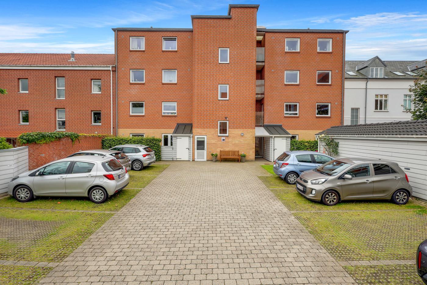 Tilhørende ejendommen er der 9 parkeringspladser på matriklen, samt offentlig parkering omkring ejendommen