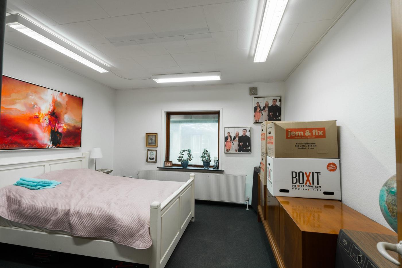 Ejendommen har et grundareal på 673 m² med bebyggelse på 480 m². Beskrivelse: Ejendommen er opført i 1950 og senest renoveret i 2013. Når man fra gaden træder ind i bygningen, bliver man først mødt med et lokale perfekt egnet til reception, bar/café, butiksfront osv. Videre inde i ejendommen finder man mange rum i forskellige størrelser med masser af udviklings potentiale. Her er mulighed for diverse former for kontor, værksted, mødelokaler, kantine/køkken og masser af lagerplads. Fra baggården er der nem adgang til en den store sal/varemodtagelse, da man kan åbne helt op for salen ud til gården. En del af ejendommen er pt. indrettet til bolig i form af en lejlighed med privat entré til bygningen, men også med nem adgang til erhvervsdelen. Lejligheden er i på 1 sal. med en stor tagterrasse med udsigt ud til baggården. I lejligheden finder man et lyst åbent køkken, en TV-stue, soveværelse, og toilet med bruseniche. Igennem ejendommen er der nem adgang imellem enhederne.