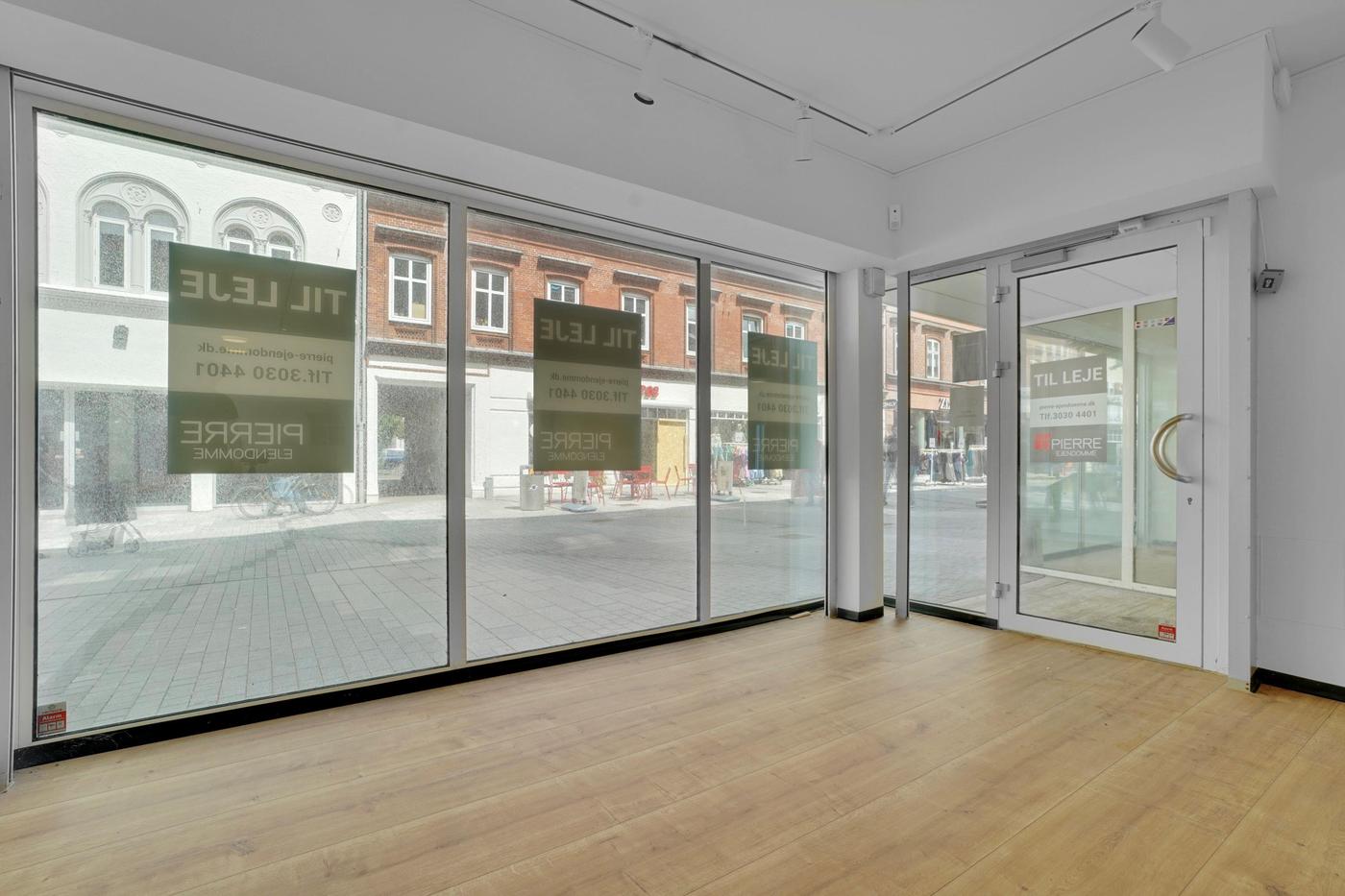 Beskrivelse: Lejemålet andrager i alt 71 m² i stueplan og 19 m² i kælderen, Det består af et lyst og indbydende lokale, der byder på mange indretningsmuligheder. I den ene ende af lokalet er findes prøverum og betjeningsdisk. og så et kontor/lager i kælderen. Grundet lokalets udformning kan det bl.a. inddeles i afdelinger med forskellige udtryk, eller udnyttes til opdeling af varetyper m.v. Idet lejemålet har beliggenhed i "solsiden" i gågaden, gives et godt dagslys ind i lokalet. Der er kundeindgang fra gågaden, og personaleindgang på ejendommens bagside, ved parkeringspladsen i Borgergade.