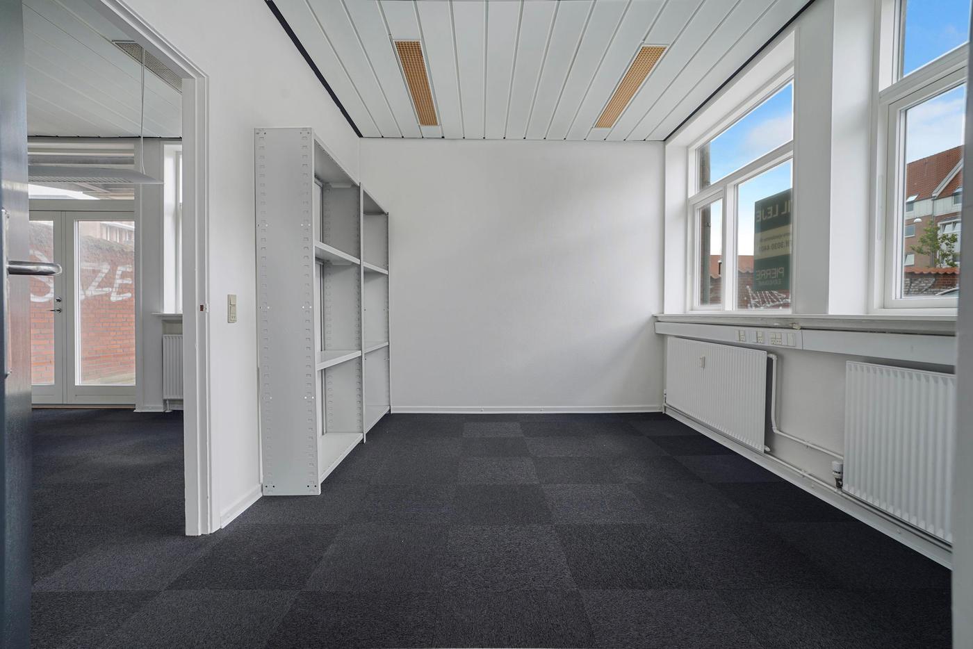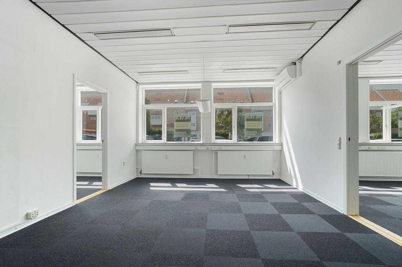 Beskrivelse: Bygningen er opført i 2 etager i røde mursten med sadeltag belagt med tegl. Det ledige lejemål er beliggende i stueplan og er i alt 144 m². Det fremtræder pænt, lyst og indbydende, og indretningen består p.t. med reception, 3 kontorer, frokostrum, gang med tekøkken samt toilet. Lokalerne byder på stor fleksibilitet, og giver mulighed for mange spændende indretningsmuligheder, der vil kunne imødekomme mange forskellige formål og behov.