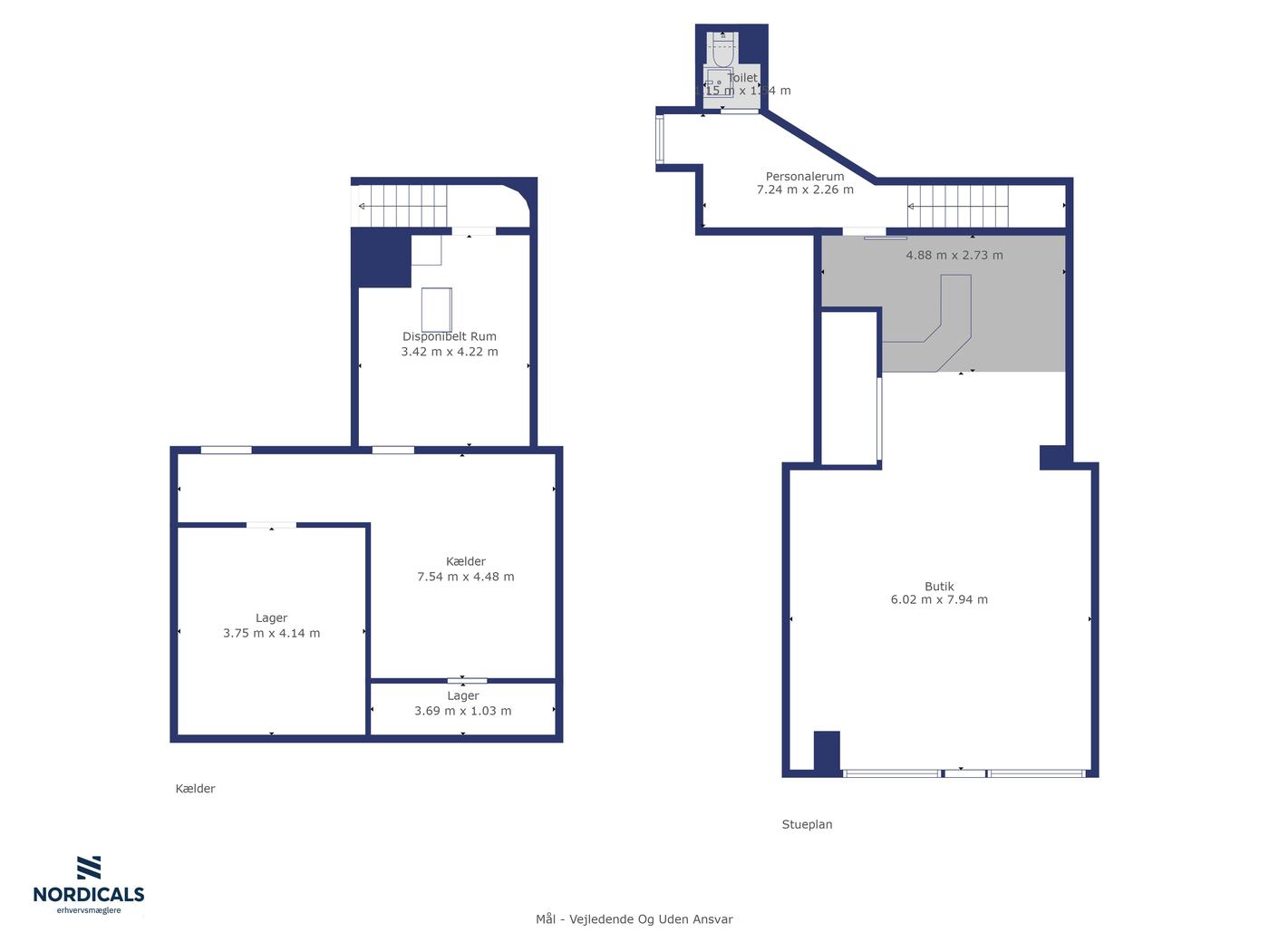 Beskrivelse: Lejemålet består af i alt 148m² fordelt på 80m² i stueplan som butik og 68m² i kælderen til lager. Butikken har store facadevinduer som giver et god lysindfald i butikken.