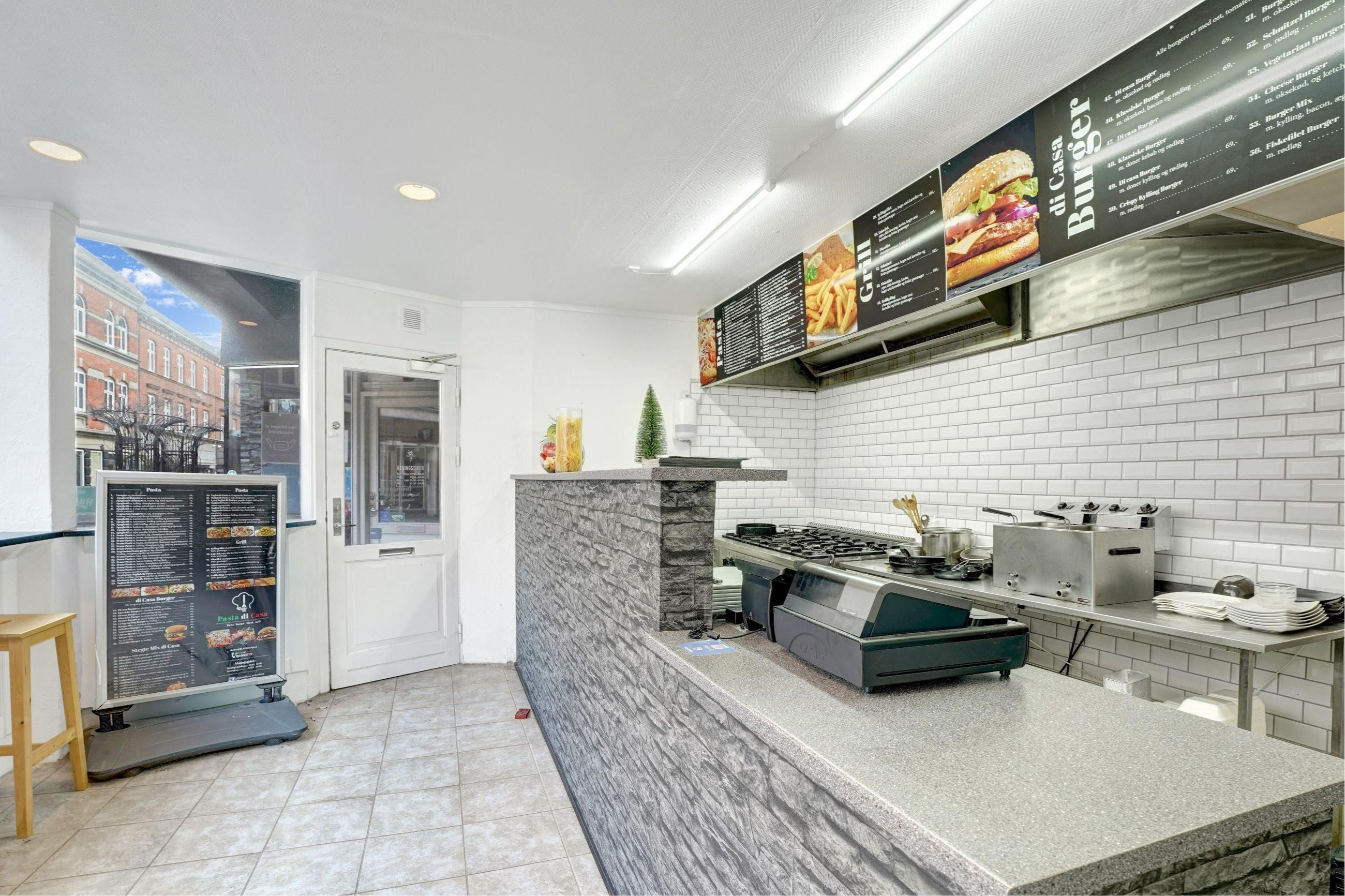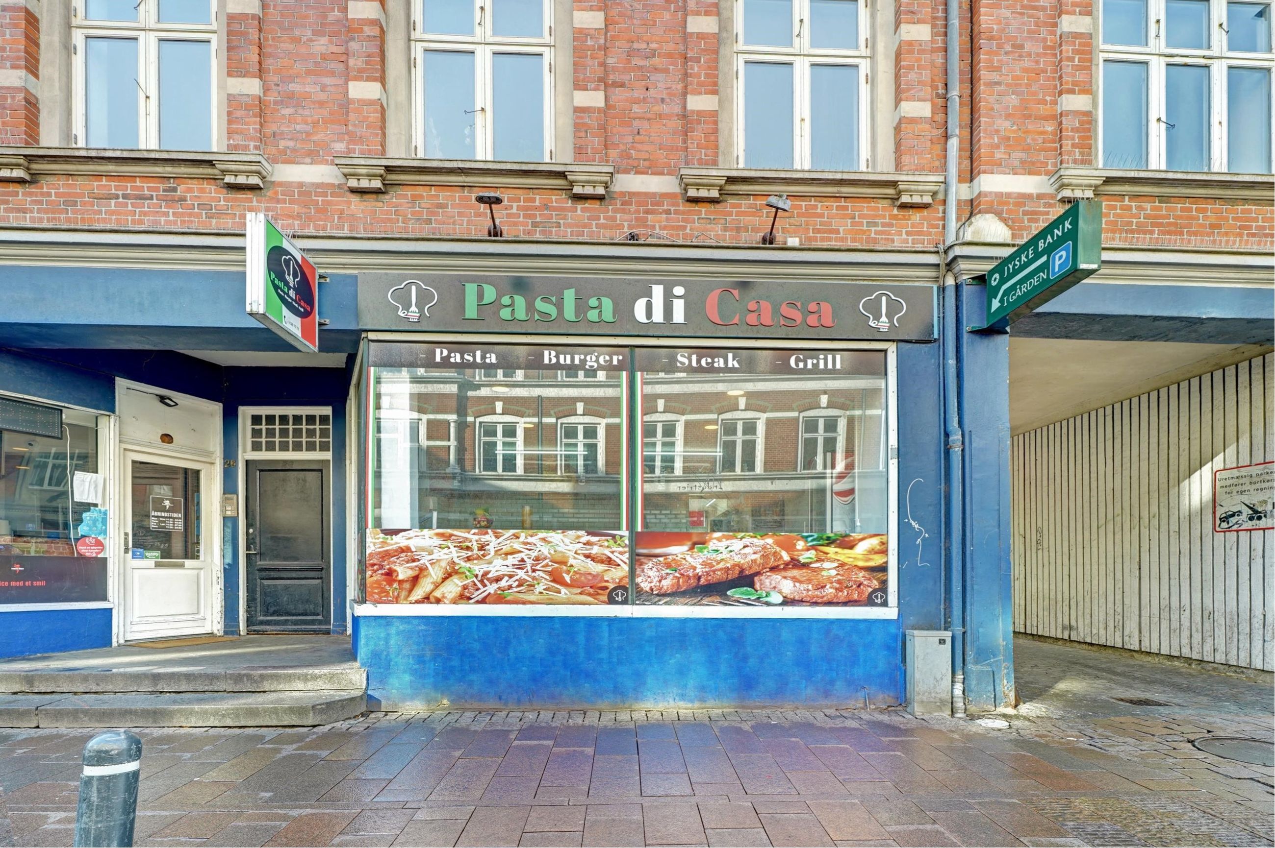 Introduktion: Nordicals erhvervsmæglere udbyder et velbeliggende restaurationslokale i Skolegade til leje. Lejemålet har senest været anvendt som mindre italiensk grillbar med take away, og åbningstid i tilknytning til nattelivet.