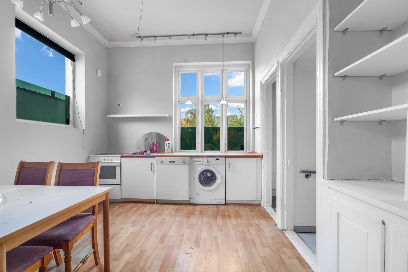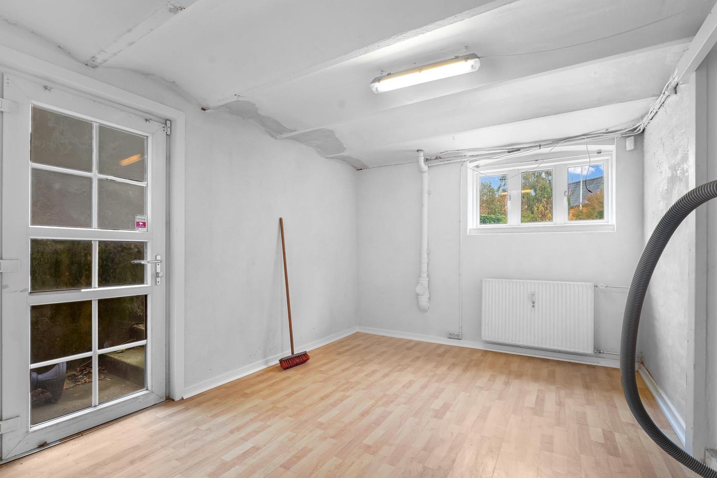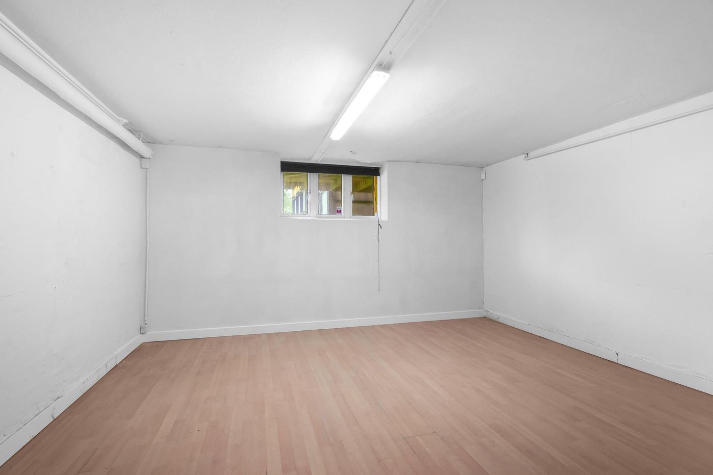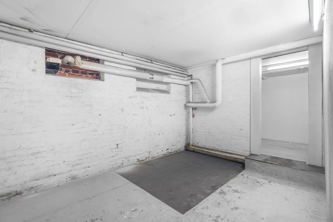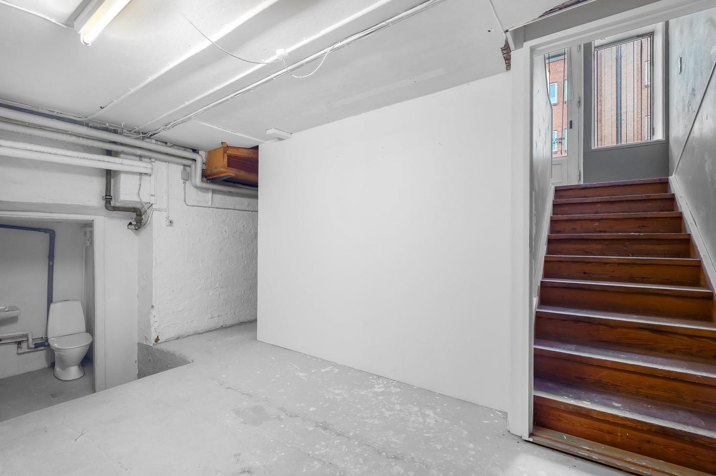 Tilhørende lejemålet er en ca. 100 m² stor og meget anvendelig kælder, der er ideel til opbevaring og lager. I kælderen er der også toiletfaciliteter.