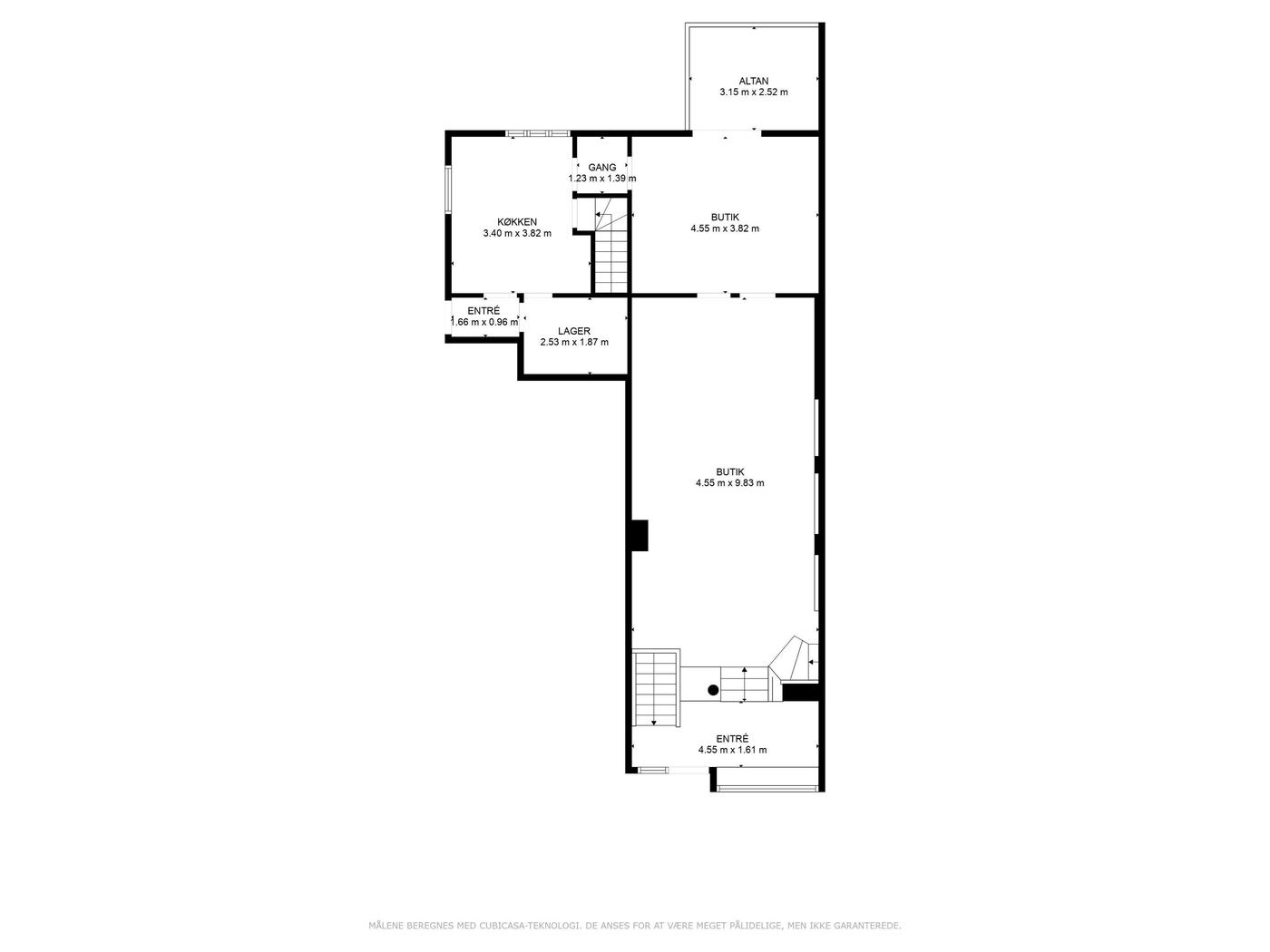 Anvendelse: Lejemålets indretning gør det velegnet til mange former for butikserhverv, showroom eller klinik. Med den store tilhørende kælder er det i høj grad anvendelig til butik med webshop, eller klinik/salon med behov for opbevaring af materialer og produkter.