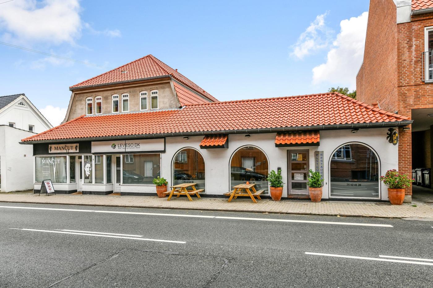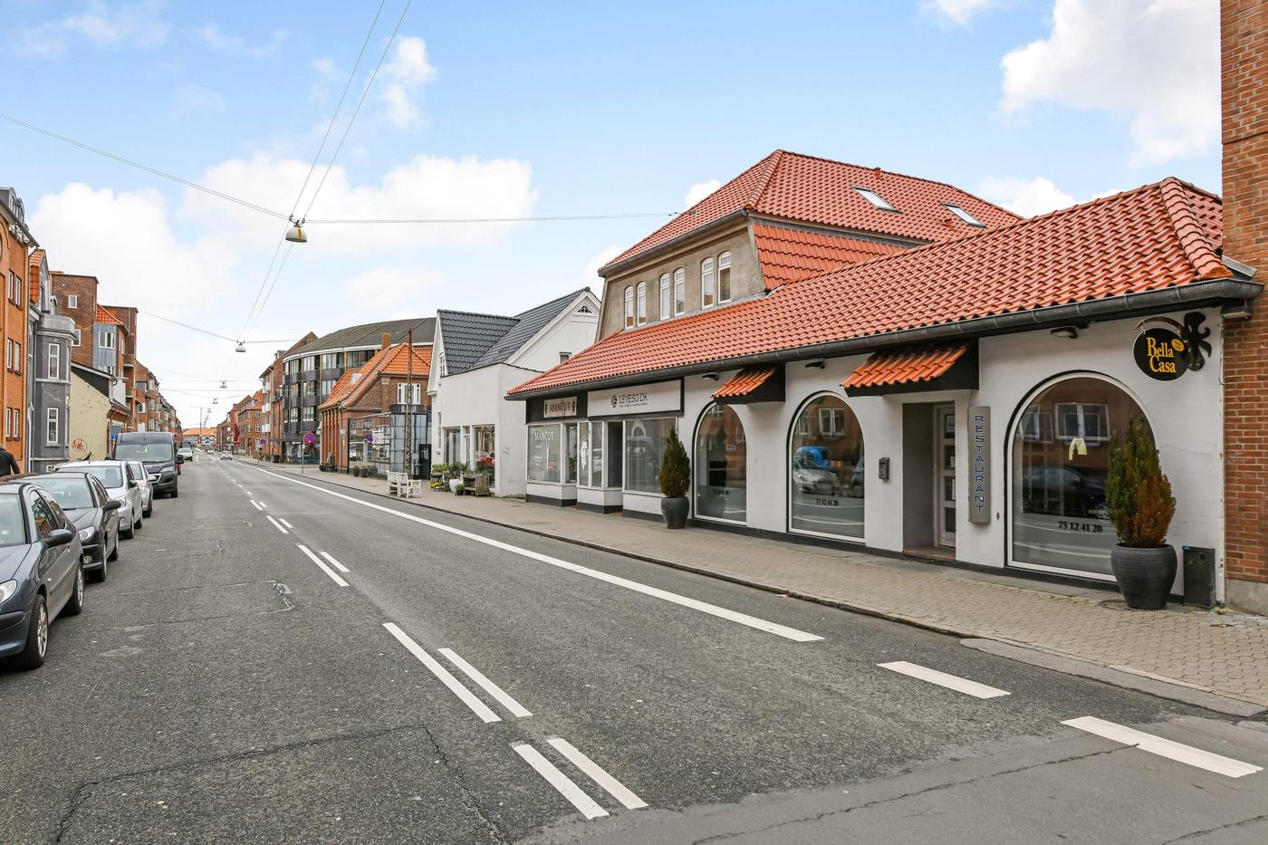 Beliggenhed: Lejemålet er beliggende i præsentabel ejendom på den tæt-trafikerede Strandbygade, som er en del af Esbjergs indre byliv, og med kort afstand til bl.a. gågaden og Esbjergs Musikhus. Omkringliggende findes mange forskellige erhvervsnaboer, der omfatter både butikker, restauranter, klinikker, fitness, banker m.v. Strandbygade udgør en vigtig hovedvej til og fra centrum, og med lejemålets beliggenhed er man sikret mange forbipasserende dagligt.