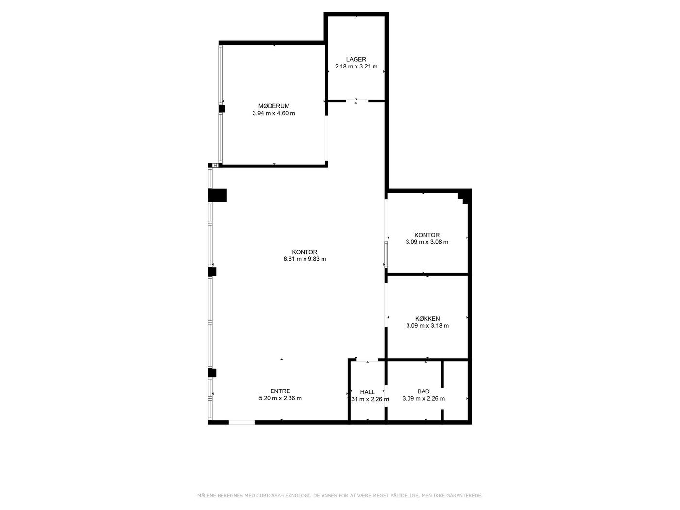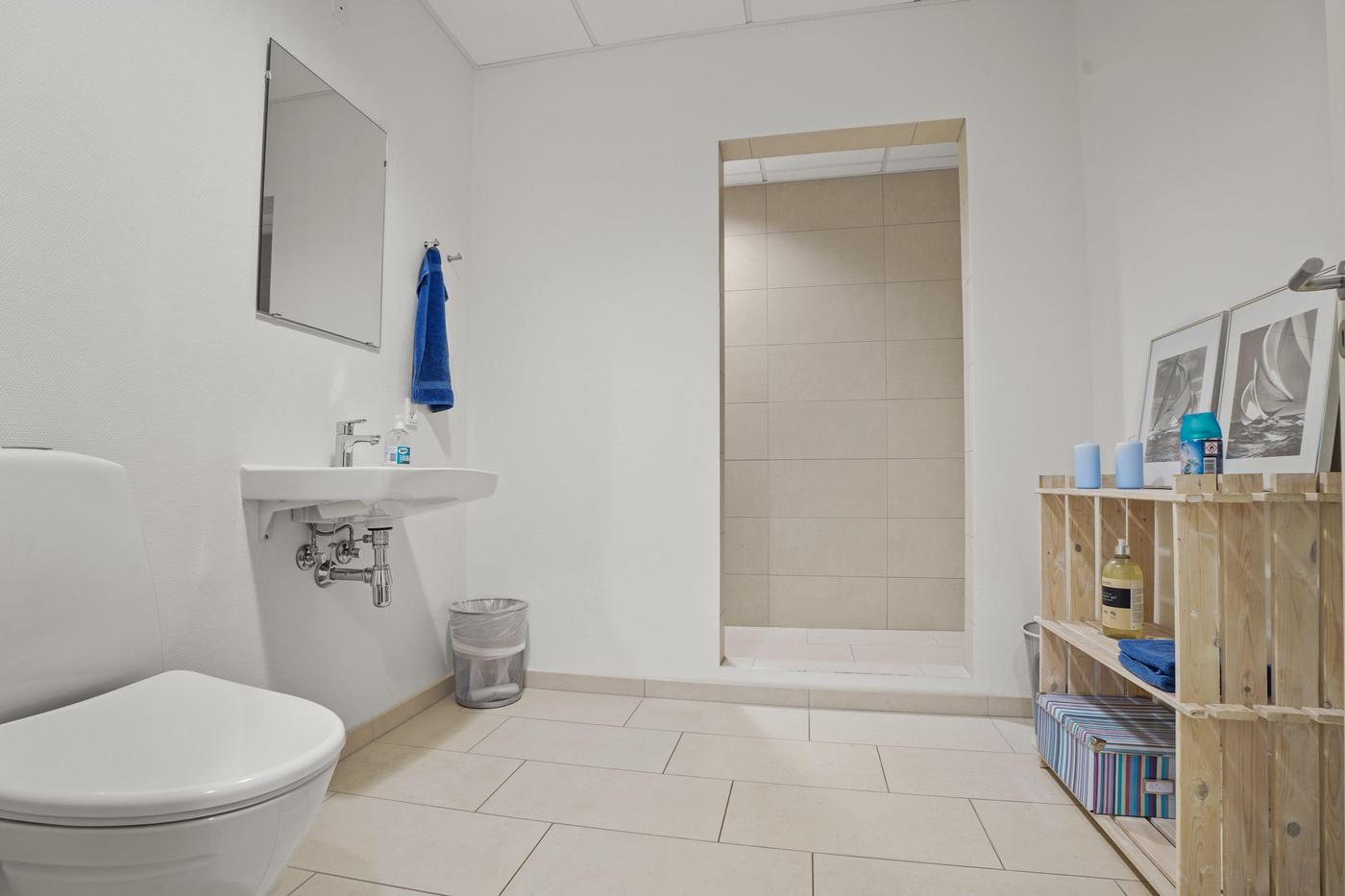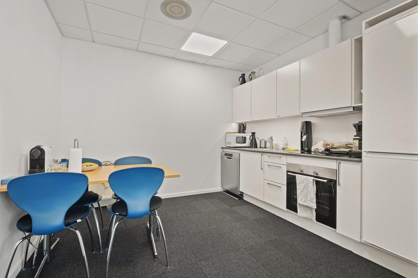 Beskrivelse: Lejemålet fordeler sig på 136,5 m² inkl. adgangsarealer. Der er egen indgang via trappe fra gaden, så det er nemt for kunder og leverandører at finde lokalerne. Facaden mod Strandbygade udgøres af en stor vinduesfacade, hvilket giver en lejer gode eksponeringsmuligheder, og desuden et dejligt lysindfald i lejemålet. Indretningen består af et indbydende kontorlandskab, mødelokaler, depot-/printerrum, et pænt køkken og toilet. Lejemålet fremtræder lyst og pænt, og i rigtig flot stand - Her er alle de nødvendige faciliteter til god og optimal kontorvirksomhed. Ligeledes vil de kunne anvendes til mange former for klinik.