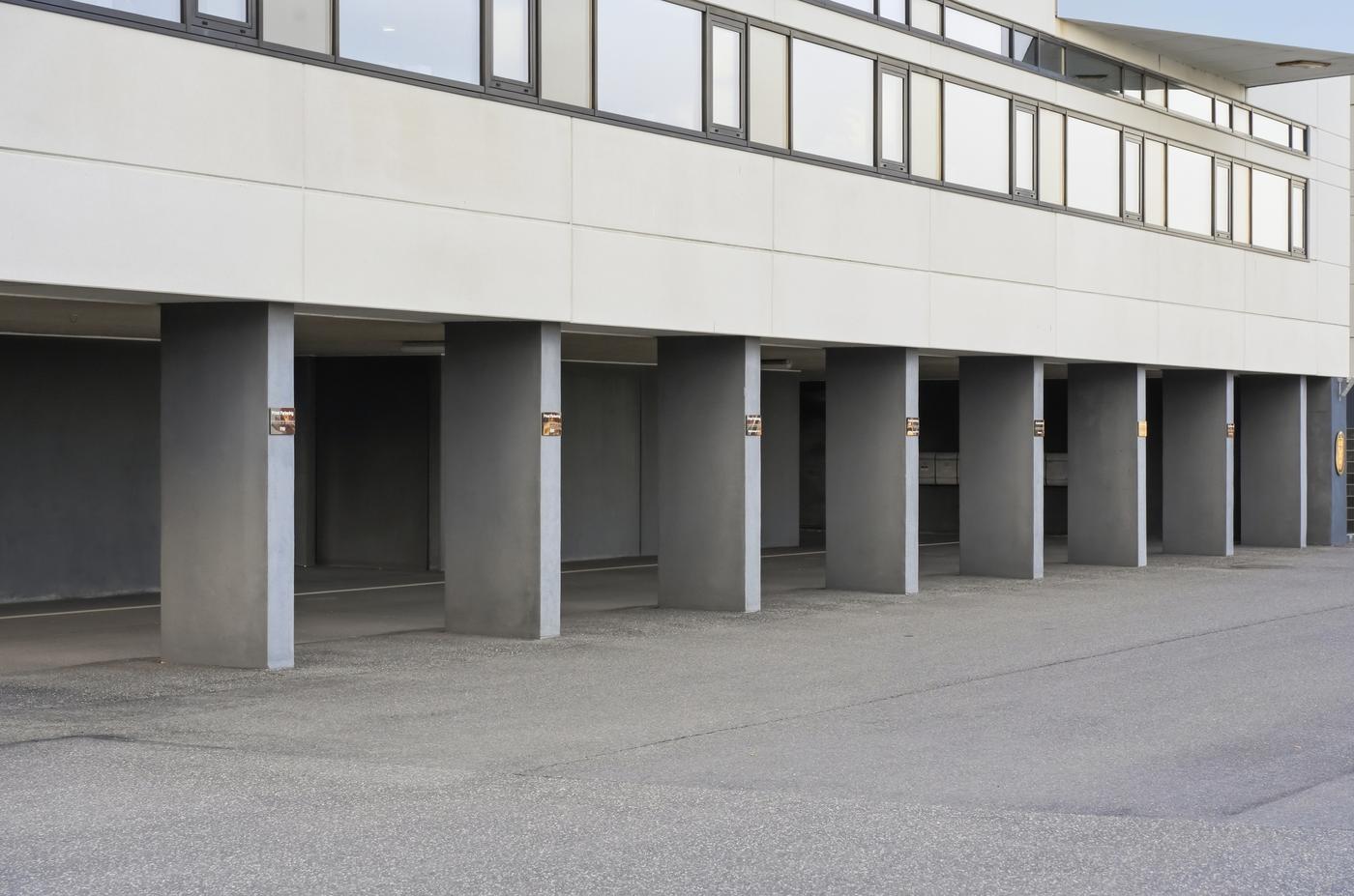 Under kontorbygningen er der etableret parkering i terræn med 43 p-pladser, således at selve kontorbygningen er hævet én etage over terræn og dermed sikret mod stormflod.