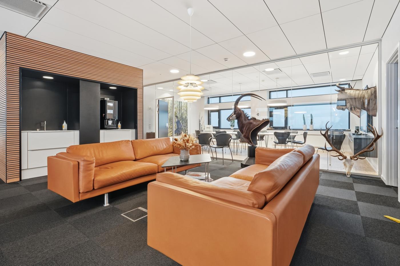 Indvendigt fremstår ejendommen med høj komfort og fleksibilitet. Aircondition og elektronisk solafskærmning sikrer et optimalt arbejdsmiljø, og de lydtætte glasvægge gør det muligt at tilpasse lejemålene fra mindre enheder på 25 m² til større sammenhængende arealer på f.eks. 1.000 m².