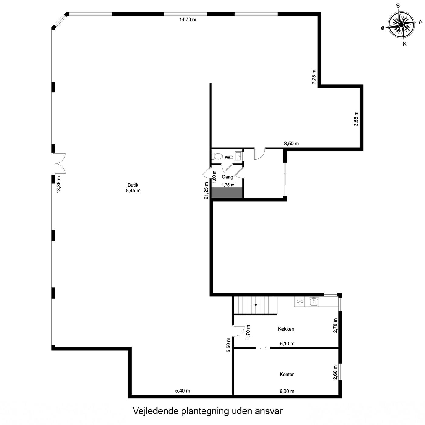 Beskrivelse: Jf. BBR er lejemålet 410 m² og er indrettet til butik med adgang fra Torvegade.