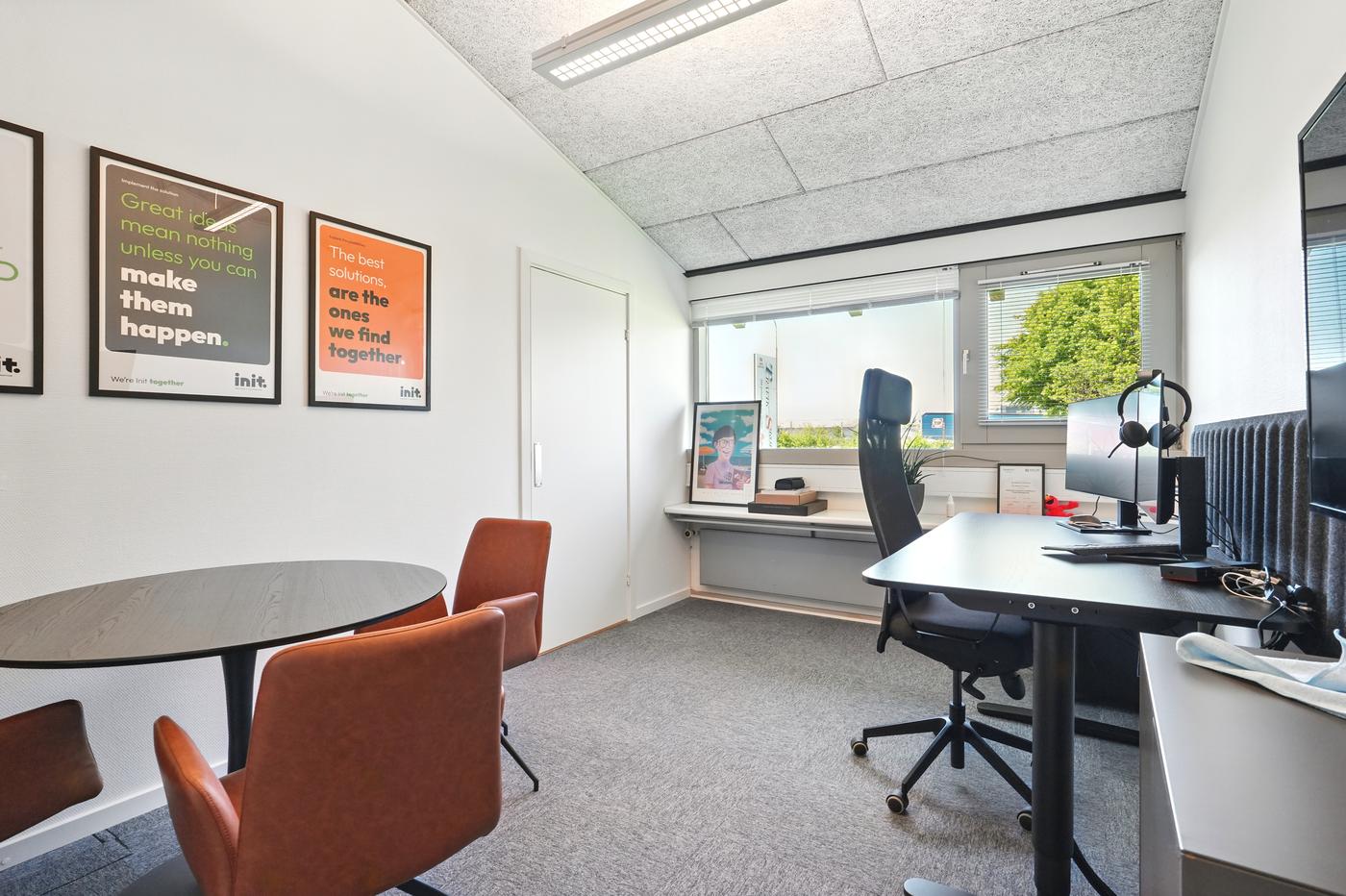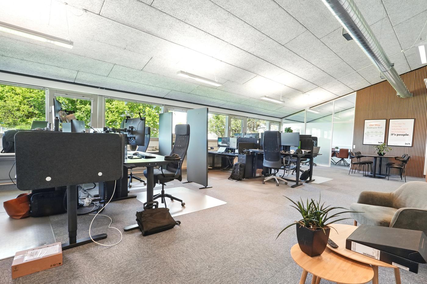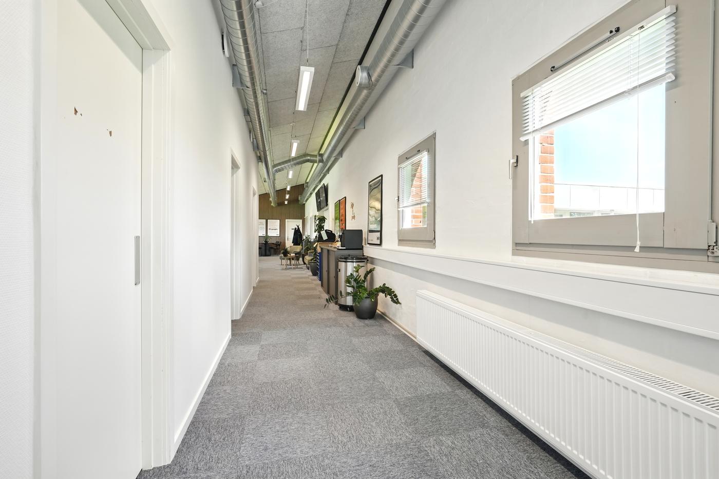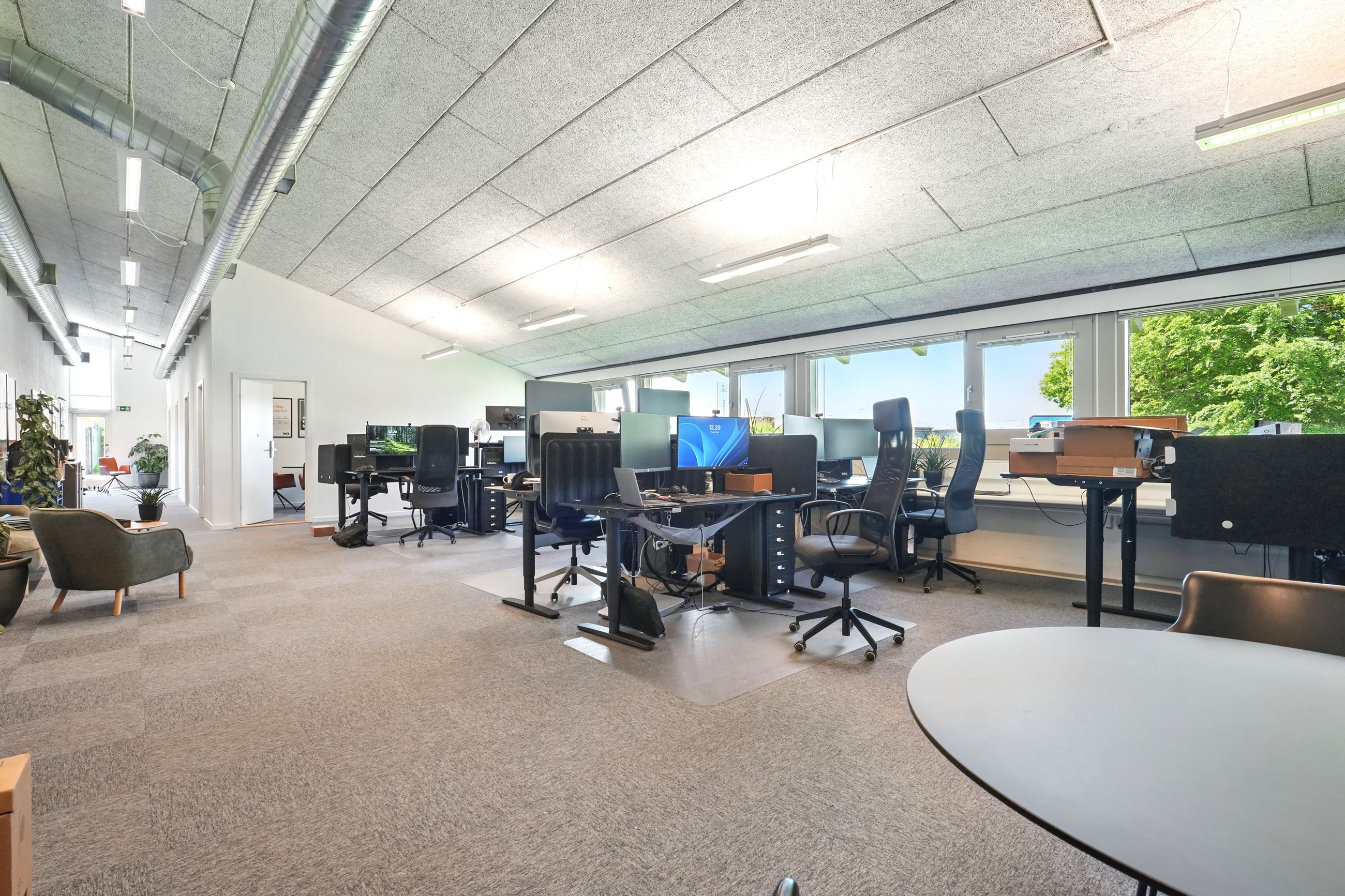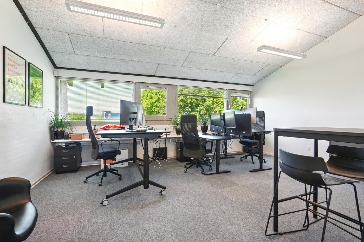 Beskrivelse: Dette kontormiljø er indrettet således, fælles kontorområde med flere arbejdsstationer, mindre kontorer samt mødelokale. Kontorerne har en god akustik på grund af troldtek lofterne, gulvtæppet og akustikpladerne, ligeledes er der et godt lysindfald fra det mange vinduer. Et super flot og moderne kontormiljø, som både giver mulighed for kontorfællesskab og privat kontorer. Derudover er gode parkeringsforhold og nem adgang til offentlig transport.