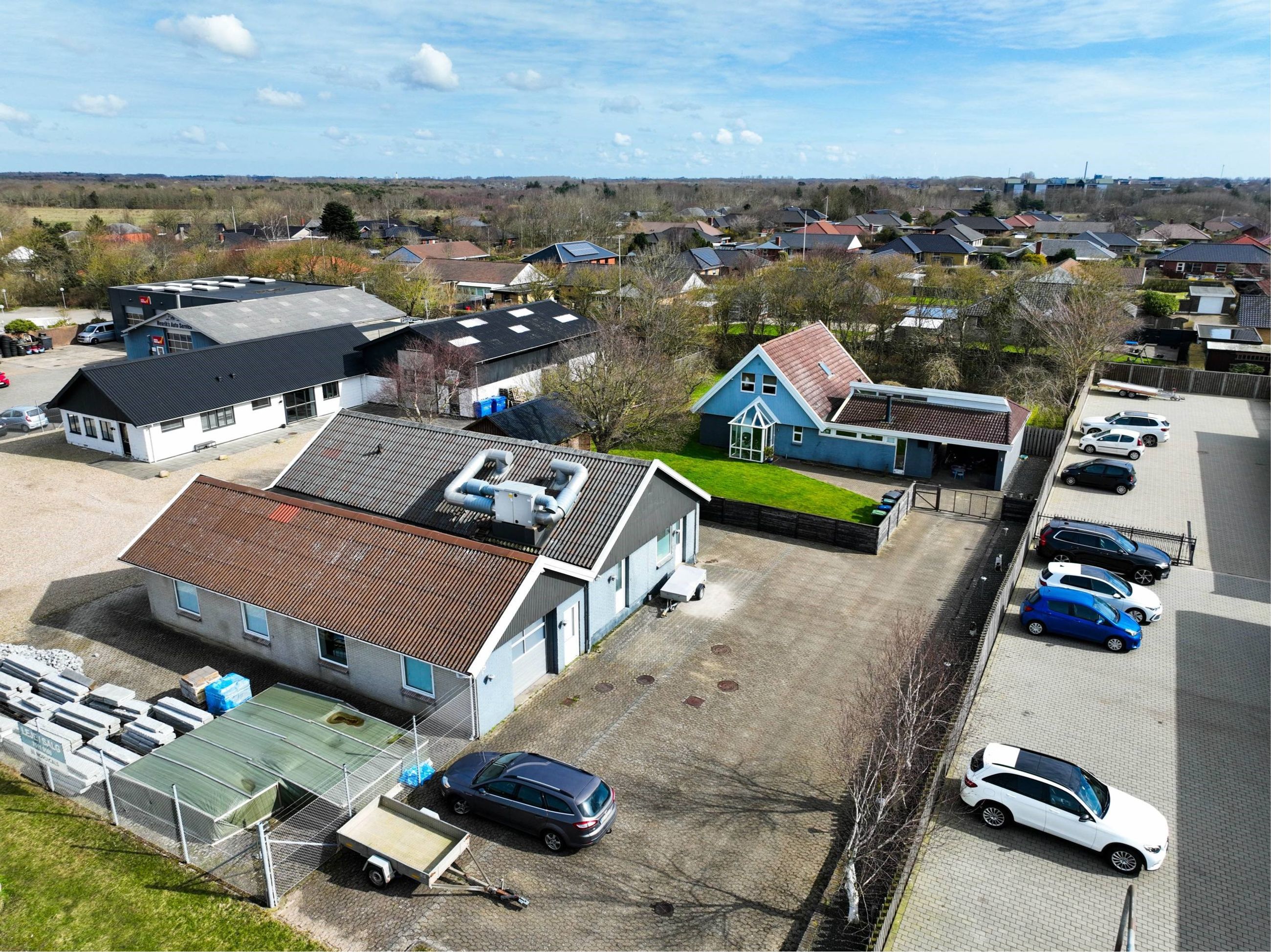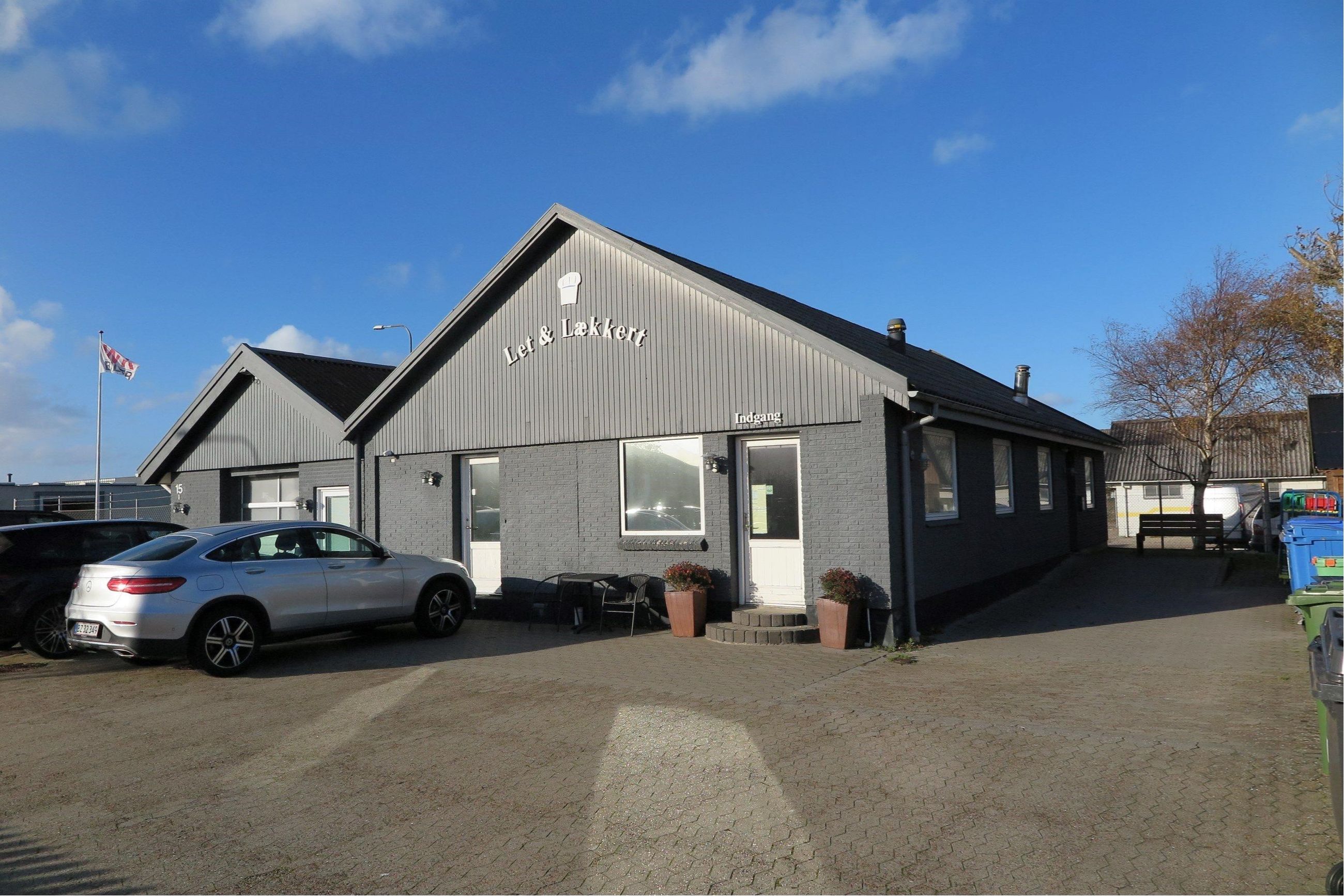 Erhvervsdelen på i alt 231 m², jf. BBR består af 2 sammenbyggede haller. Den ene hal fremstår som en 100 m² uopvarmet lagerhal. Den anden del af erhvervsbygningen, er indrettet med et stort og moderne industrikøkken, som er udlejet til cateringvirksomheden "Foodwest".