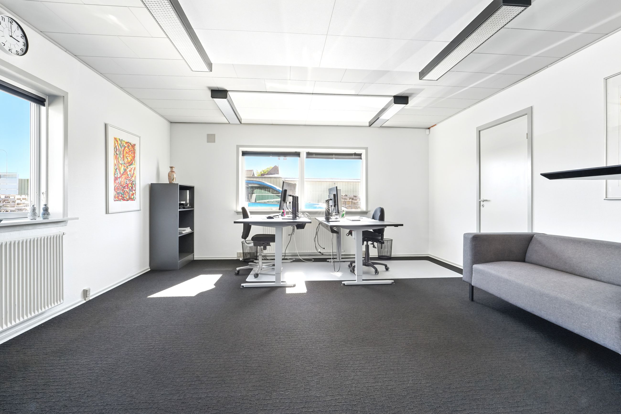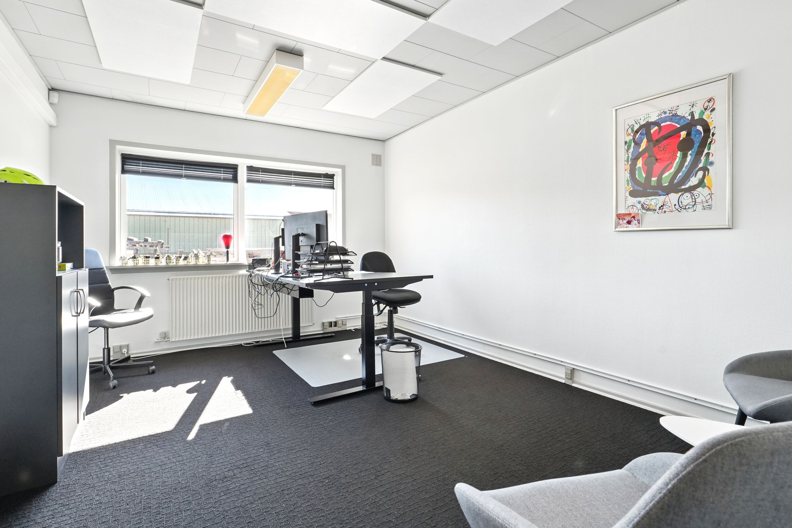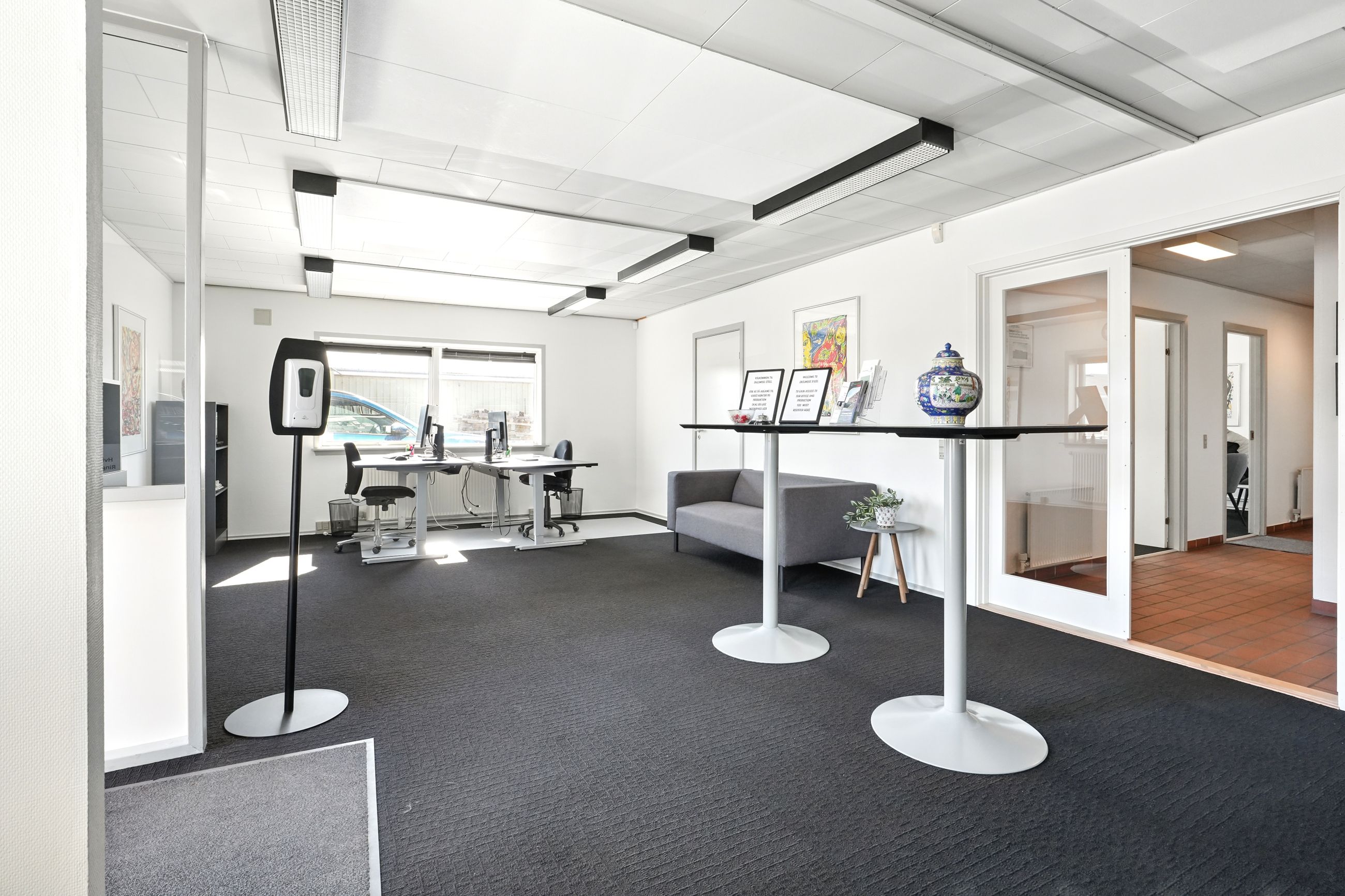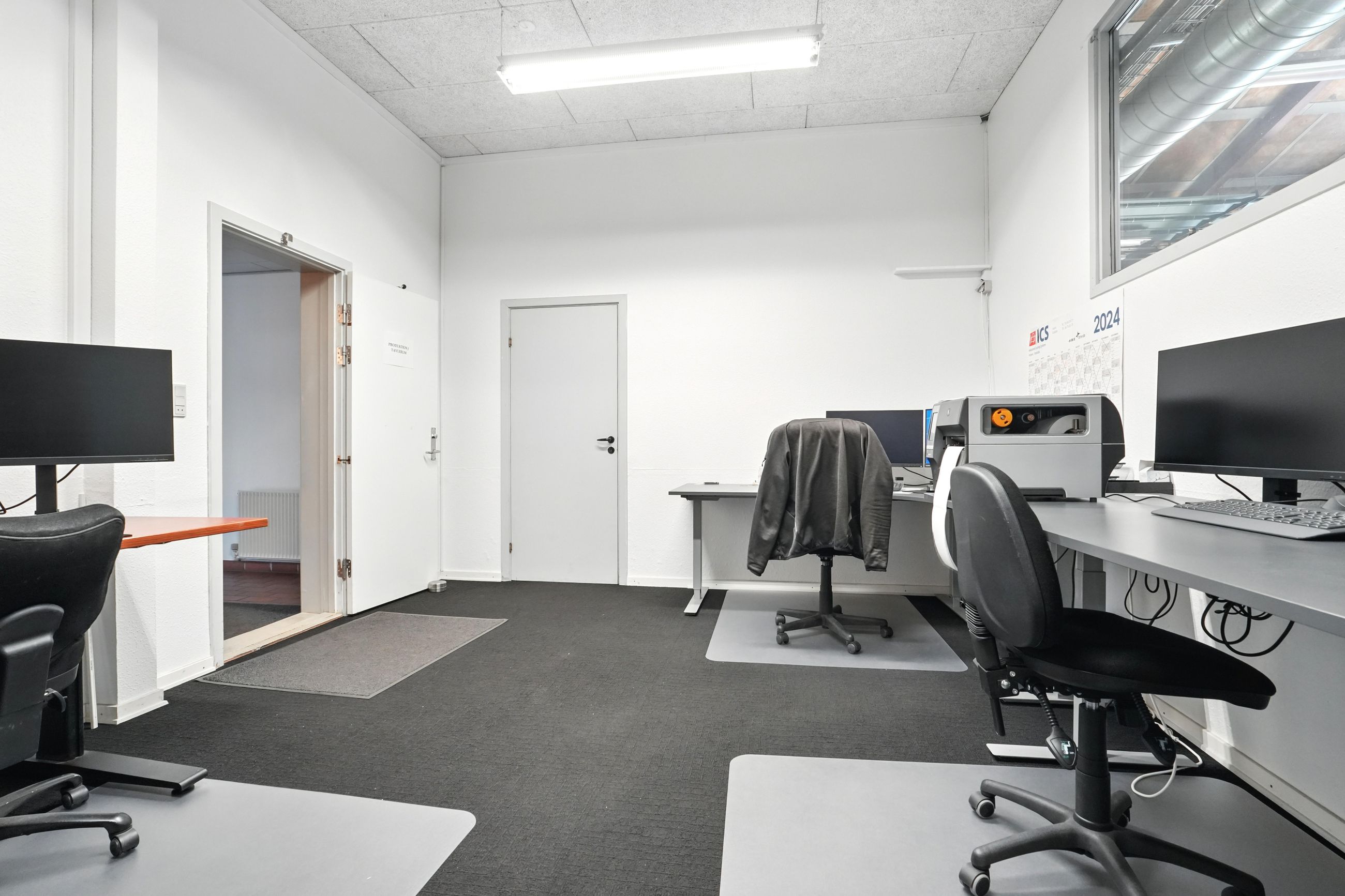 Kontordelen er indrettet med mindre kontorer og et storkontor, som også kan bruges til mødelokale. Der er også to kontorer tilknyttet til produktionsdelen.
