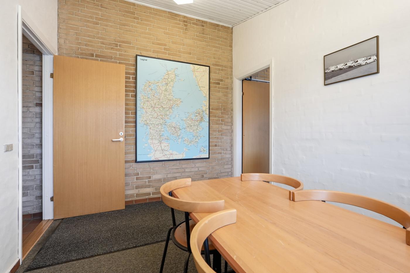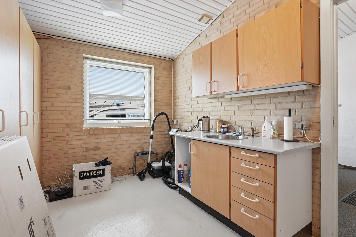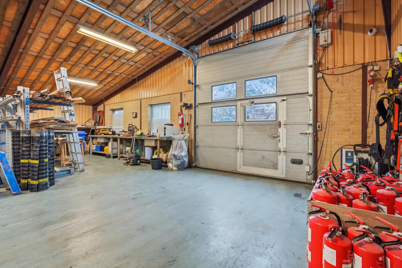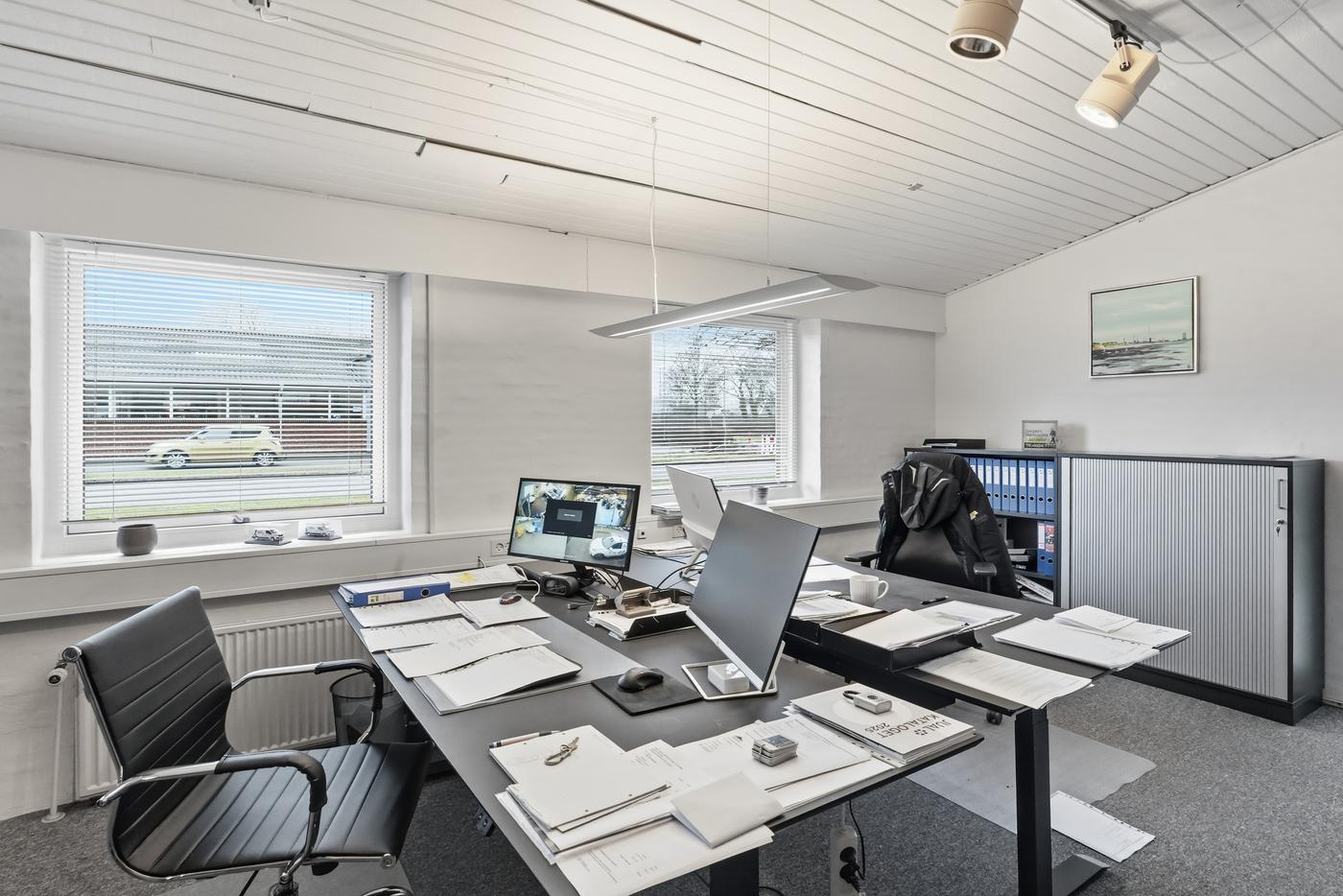 I lager-/værkstedsdelen er der en god loftshøjde og port, så lokalet nemt kan tilpasses forskellige drifts- og logistikbehov.